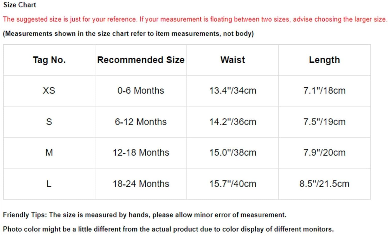 —L——|—–18-24 Months—–|—15.7”/40cm—|—8.5”/21.5cm