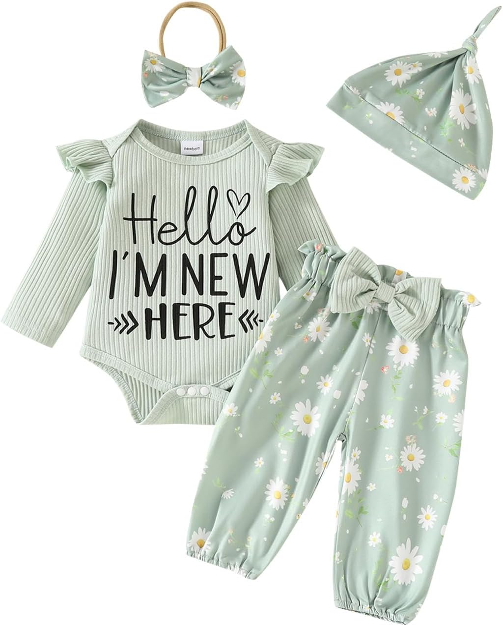 JiAmy Infant Baby Girls Outifts Newborn Daddy’s Girl Ruffle Long Sleeve Tops Bodysuit and Bow Pants 2pcs Clothes Sets