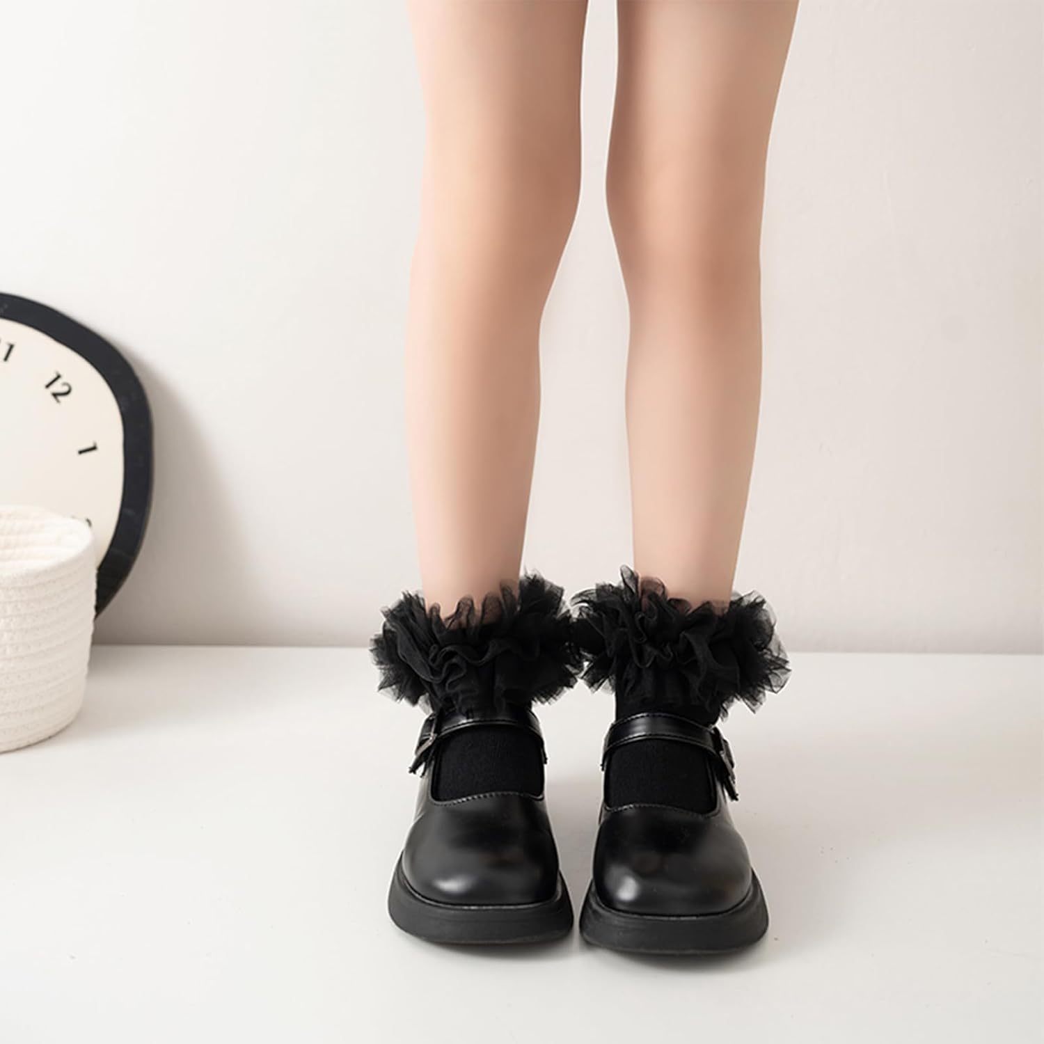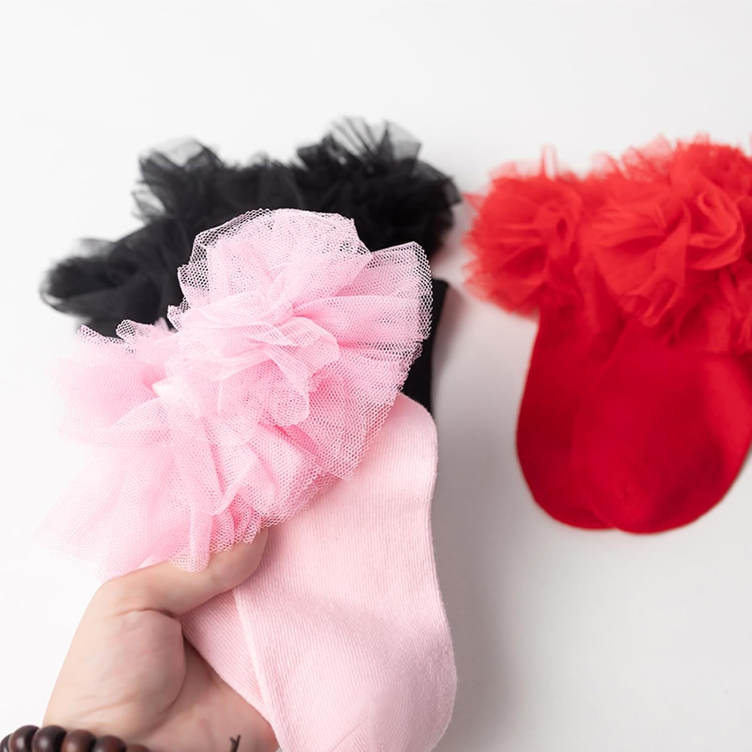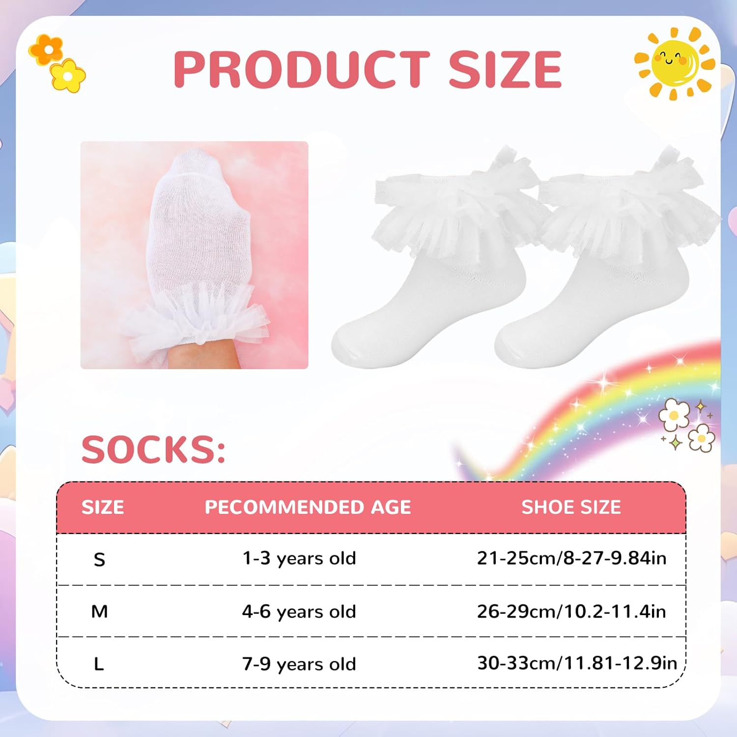 JUPSK Girls White Frilly Socks Kids Ballet Ruffle Lace Cotton Dance Dress Ankle Socks for Toddlers Baby 1-9 Years 3 Pairs
