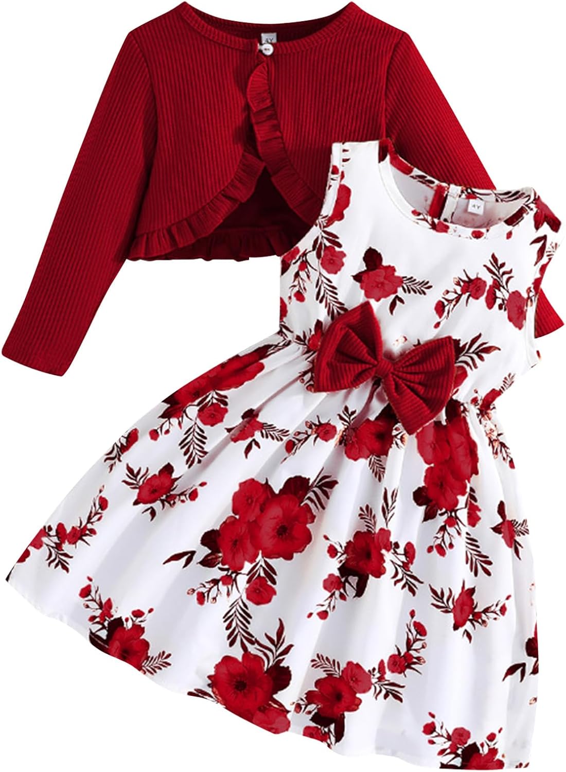 Kunyeah Toddler Girls Dress with Cardigan Set Little Girl Floral Sleeveless Dress Ruffle Coat Baby Long Sleeve Outfit