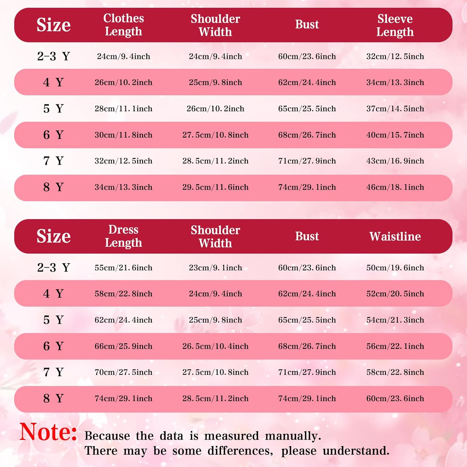 Kids spring fall dress suit is designed for girls ages 2 to 8 years old and comes in 6 different sizes, please check the size chart to find the best size for your baby!
