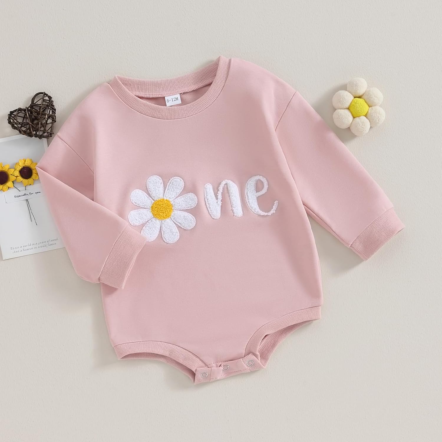 MAHUAOYIXI Newborn Baby Girls First Birthday Outfits Letter Floral Strawberry Embroidery Romper Long Sleeve Bodysuits Toddler Infant Girls Clothes Birthday Gift For Baby Girl