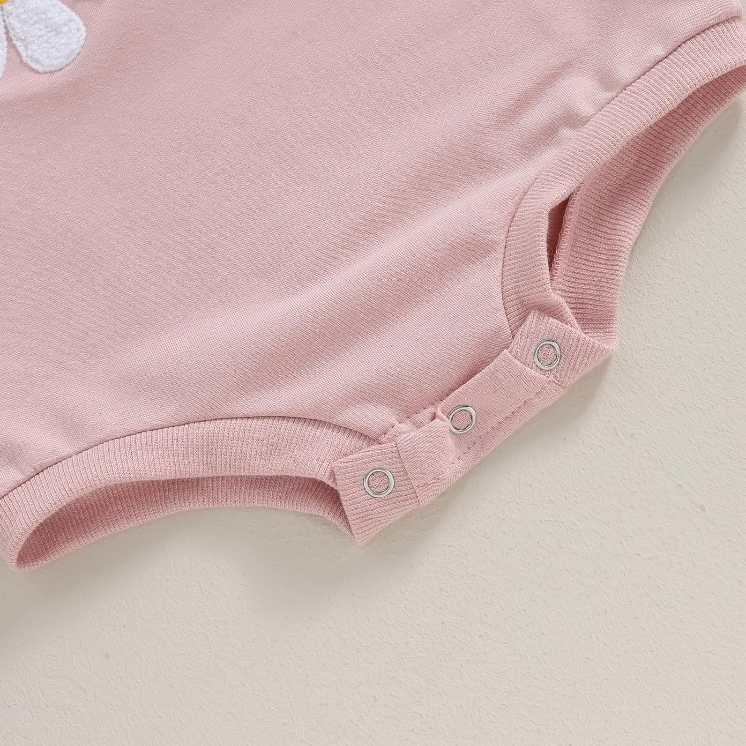 Baby Girls Romper, Long Sleeve Crew Neck Letters Flowers Bodysuit Birthday Clothes