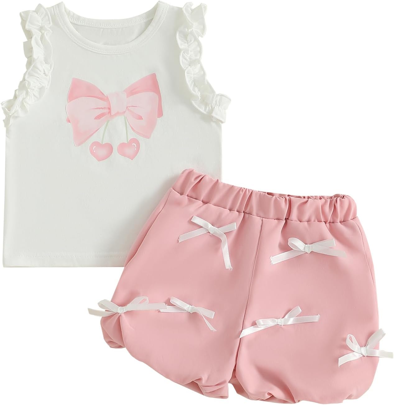 Toddler Baby Girl Shorts Set Bow Frill Trim Sleeveless Tank Tops Elastic Waist Bloomers 2 Piece Summer Outfit