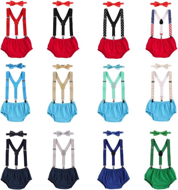 Newborn Baby Boys Toddlers Cake Smash Outfit Shorts Bloomers Bowtie adjustable Elastic Y Back Suspenders Photo Props Children Kids Unisex Braces 3pcs Set