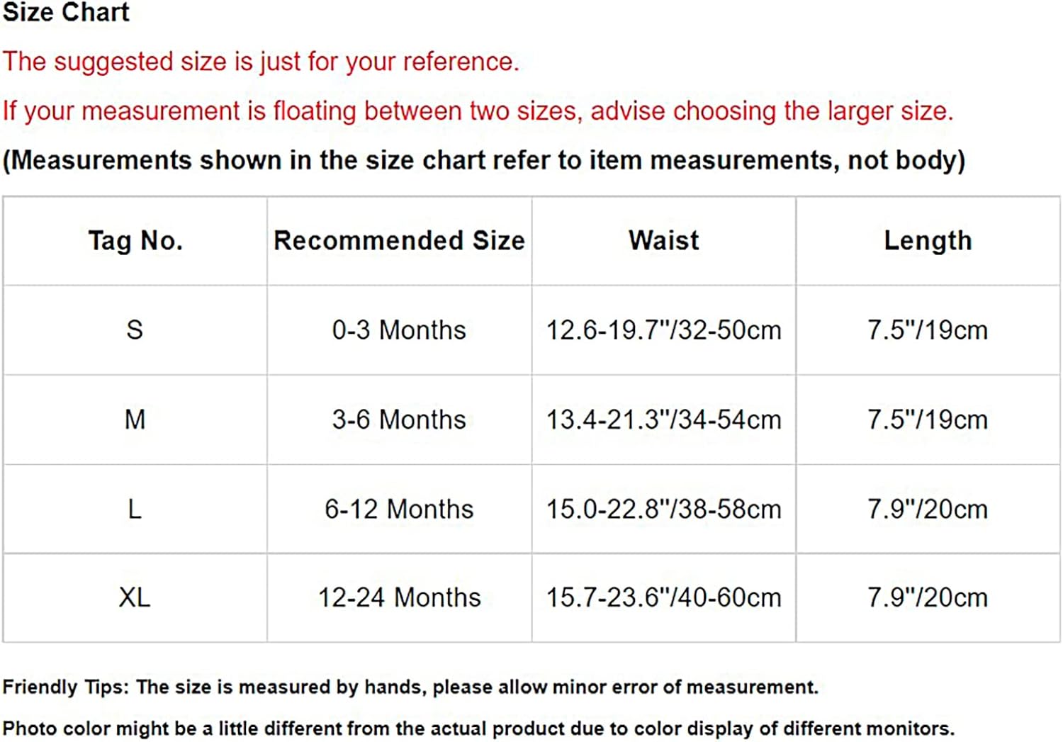 —XL—–|—–12-24 Months—–|—15.7-23.6”/40-60cm—|—7.9”/20cm