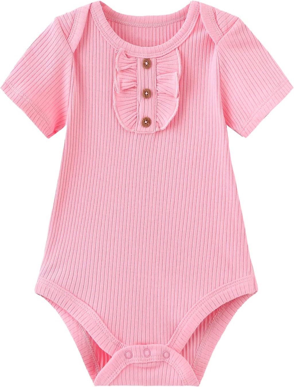 Newborn Baby Short Sleeve Bodysuit Baby Grow Cotton Vest 5-pack, 0-12 Months