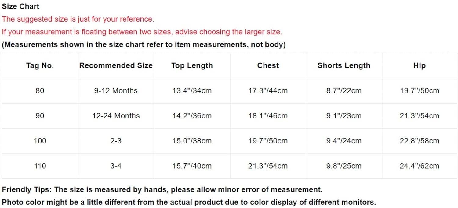 Tag No.—|—Recommended Size—|—-Top Length—|——Chest——|—Shorts Length—|——-Hip—-