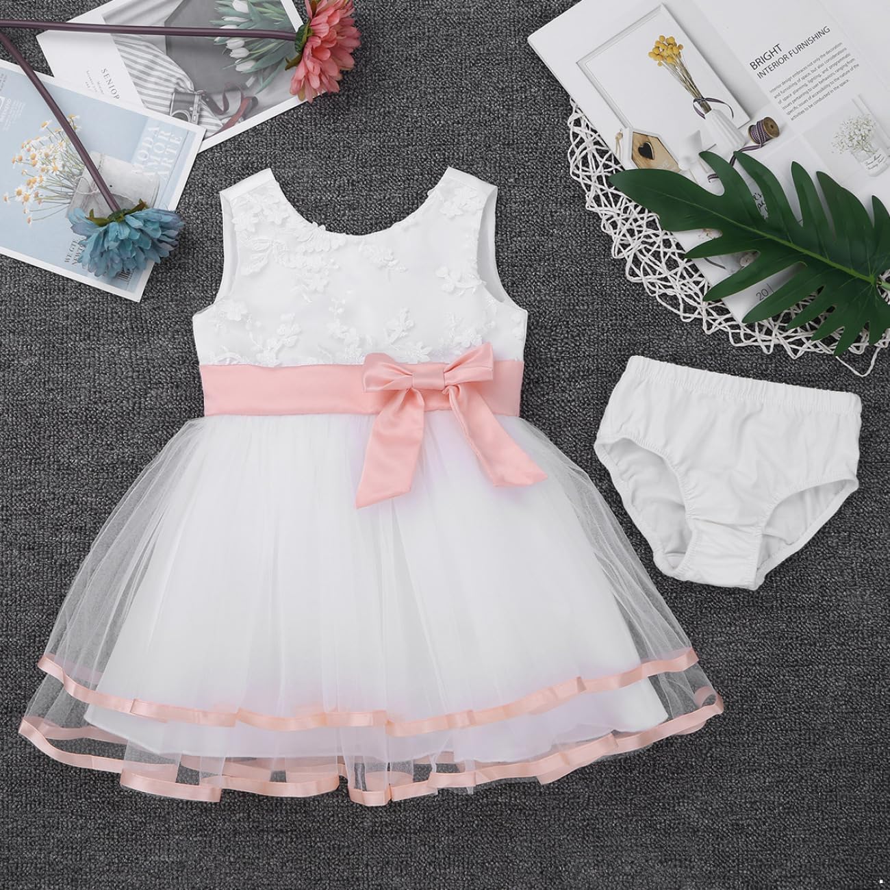 Riismen Baby Girls Christening Baptism Outfit Embroidered Princess Dress with Bloomers for Birthday