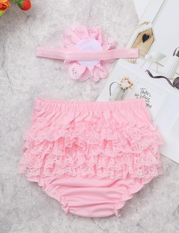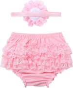 Sinleey Baby Girls Cotton Ruffle Elastic Waistband Bloomers Diaper Cover Frilly Lace Knickers with Flower Headband Set