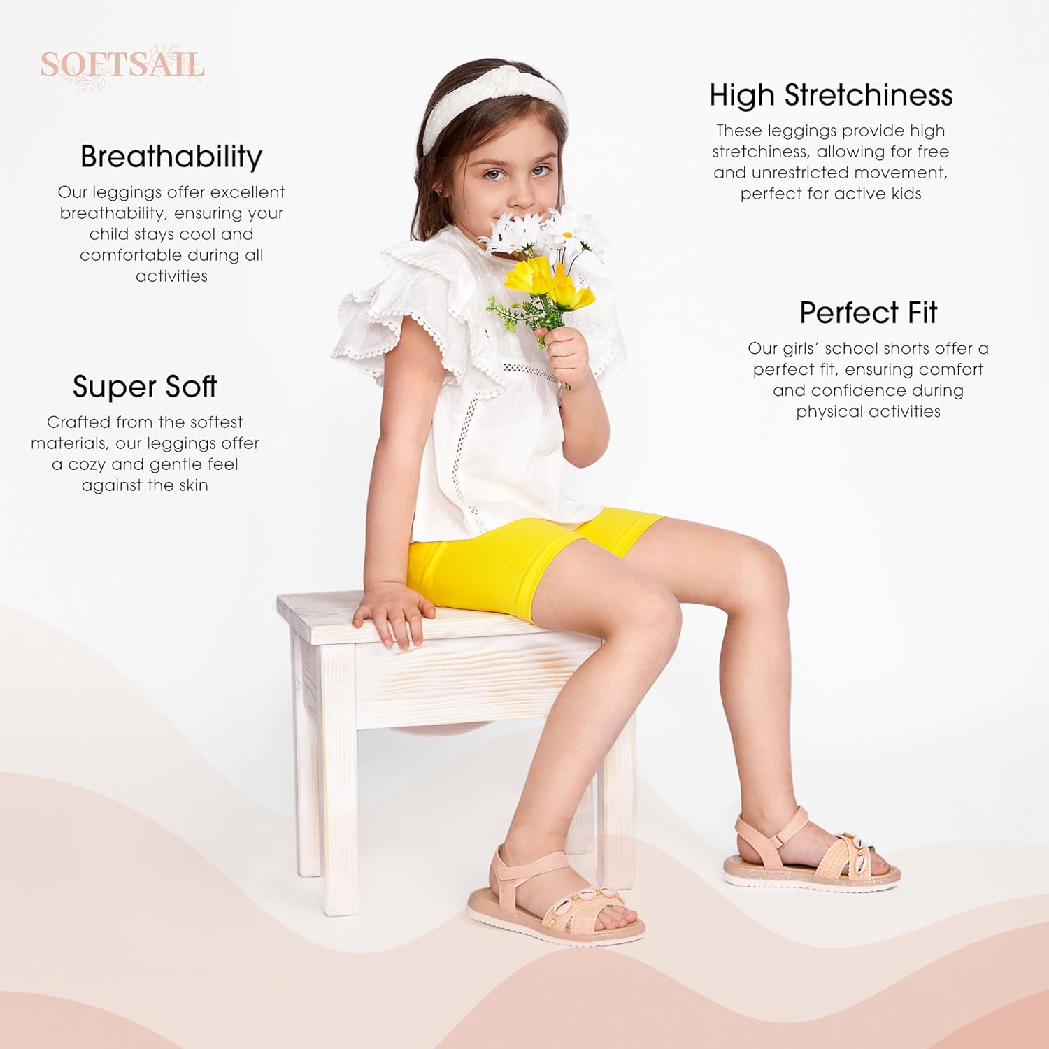 SOFTSAIL Girls Leggings Cycling Shorts Short Cotton Sport Dancing Gymnastic Breathable Comfy Stretchable
