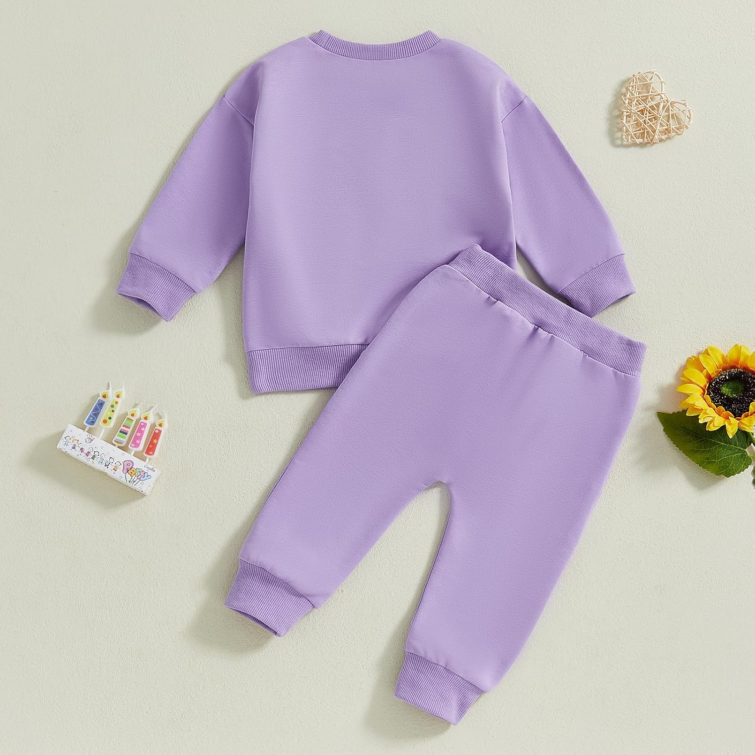 Little Girls Boys Birthday Outfits Long Sleeve Letter Print Tops Drawstring Pants Sets