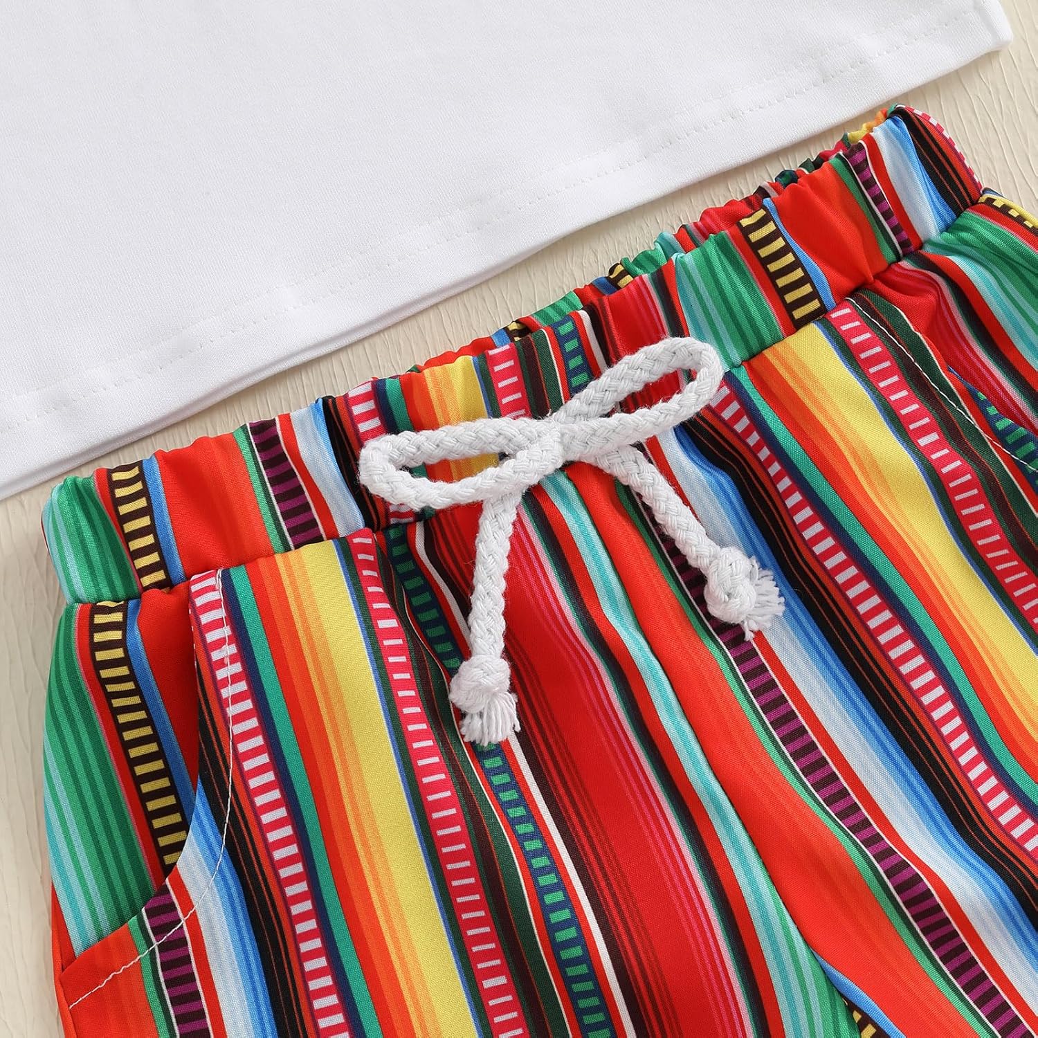 Toddler Kid Girls Summer Outfit Animal Embroidery Short Sleeve Top Colorful Stripes Elastic Waist Shorts Set 2Pcs Clothes Set
