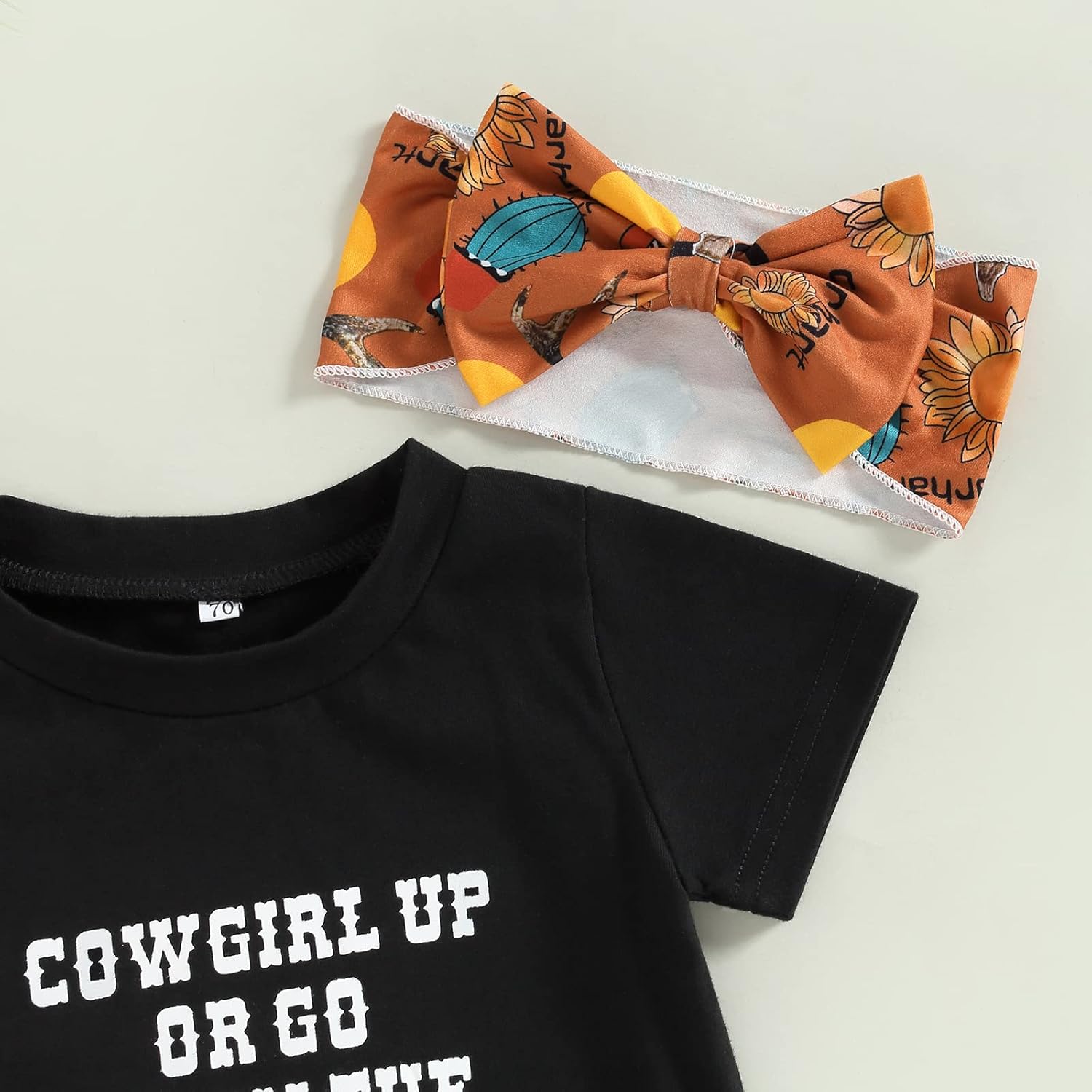 Western Baby Girl Clothes Summer Boho Cow Print Short Sleeve Tassel T Shirt Top + Bloomer Shorts Set Infant Cowgirl Outfits