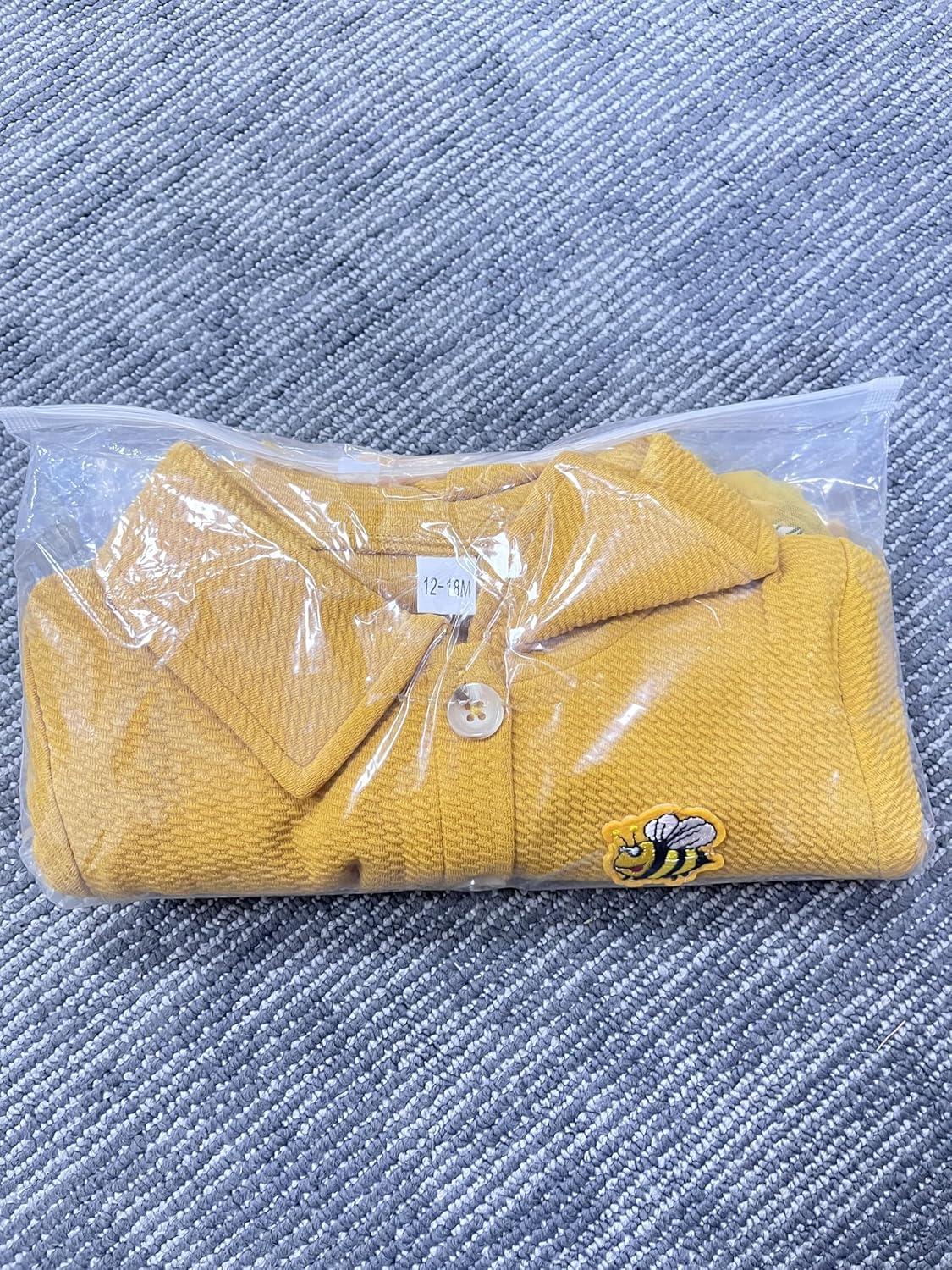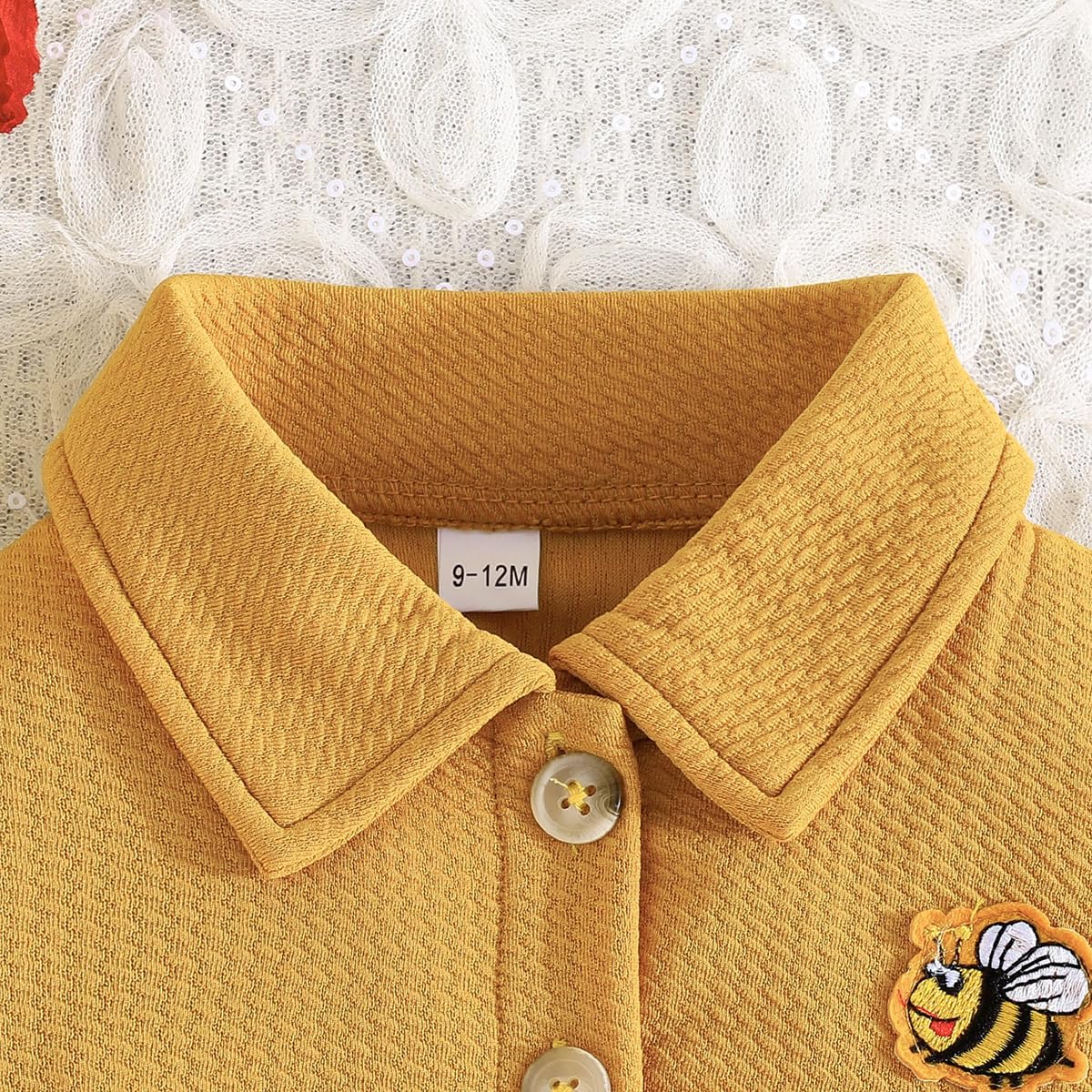 Adorable two-piece dress and coat set for 6 month-3 years baby girls, featuring a cute bee print dress and a stylish collar coat, perfect for both wearing together or mixing and matching with other items in your little one’s wardrobe.