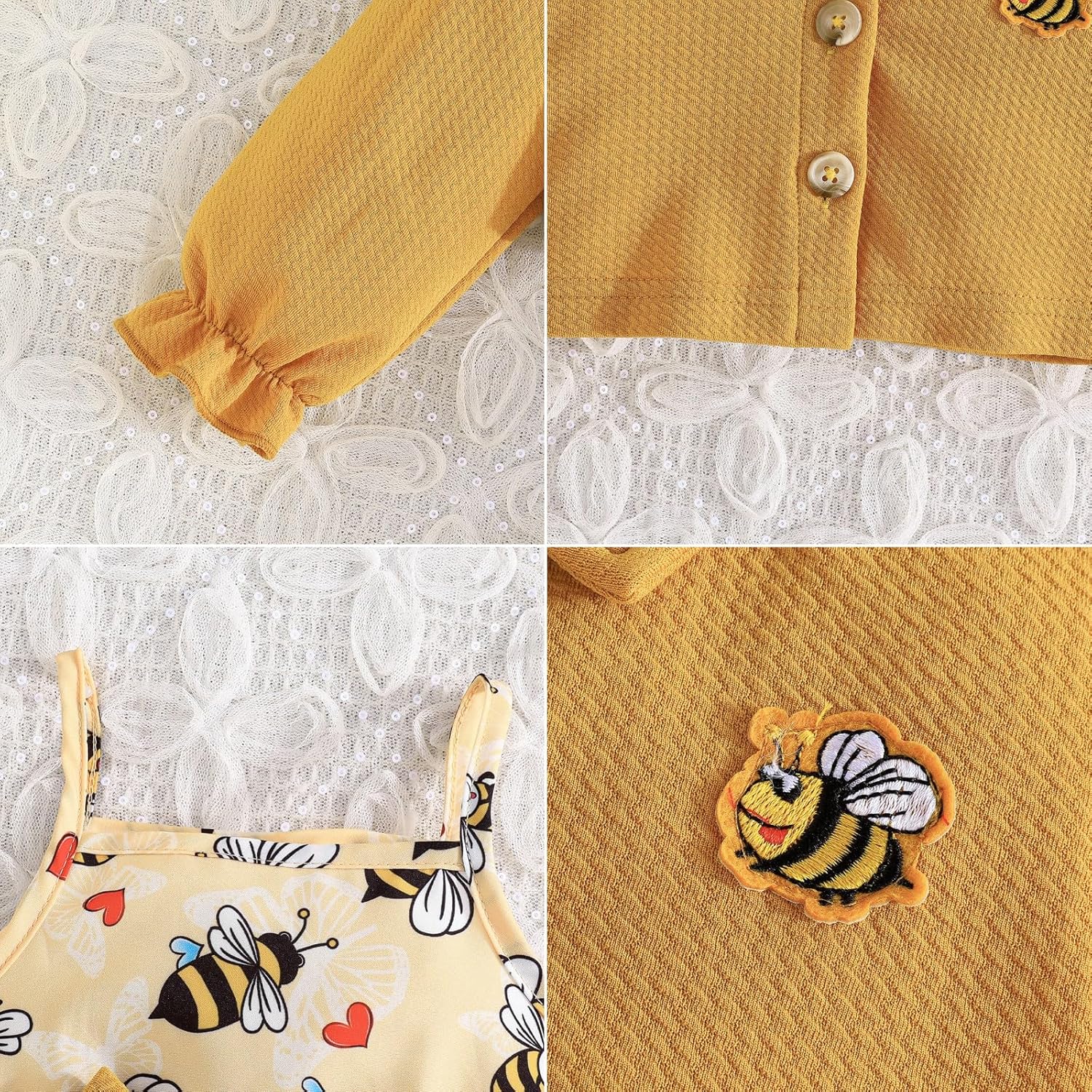 Yanmucy Toddler Baby Girls Dress and Coat Set 2PCS Honeybee Print Tutu Dresses Long Sleeve Lapel Cardigan Baby Girl Clothes Outfits