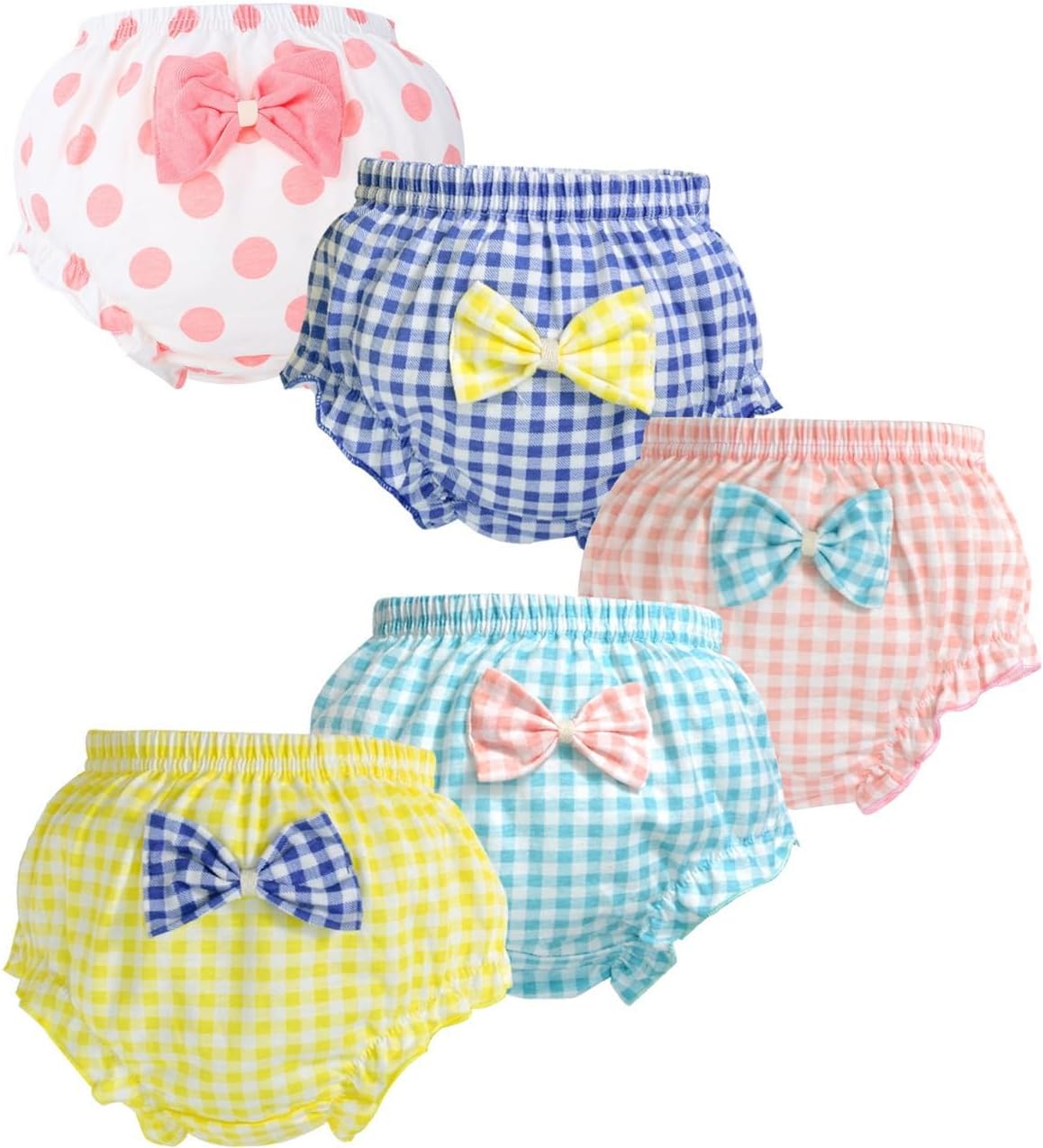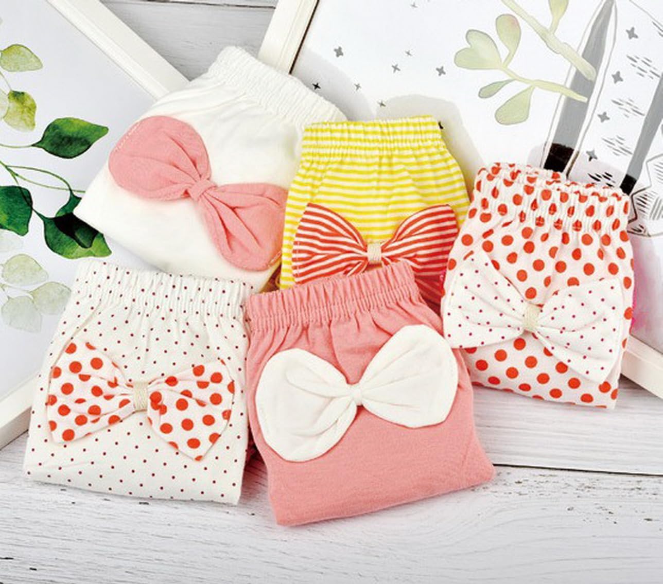 ZCXCsfp 5 Pieces Cotton Infant Girl Ruffle Panties Cute Bow Bloomers Underwear Flocked Panties, Undies Bloomers Panties Shorts for Girl 1-7 Years