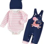 Ecojoy Baby Girl Vest 3PCs Grow Long/Short Sleeve Summer Fall Bodysuit with 3 Headbands/Hats