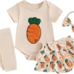 HEOXIN Newborn Baby Girl Clothes Set, Long Sleeve Outfits Ruffle Romper, Bodysuits Plaid Dress and Headband with Bowknot Clothes Set, Baby Girl Outfit for 0-18 Months Baby Girl, Apricot