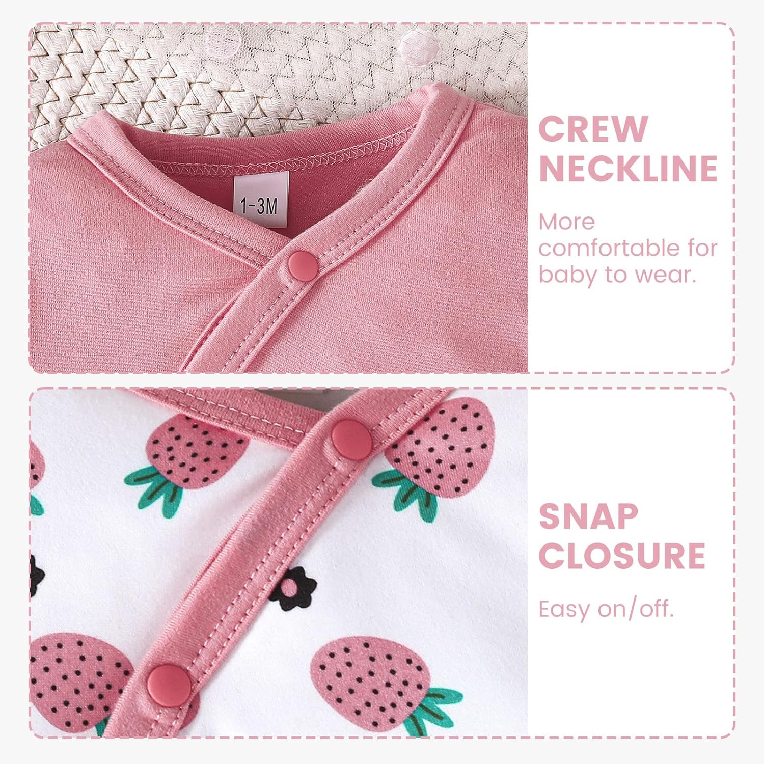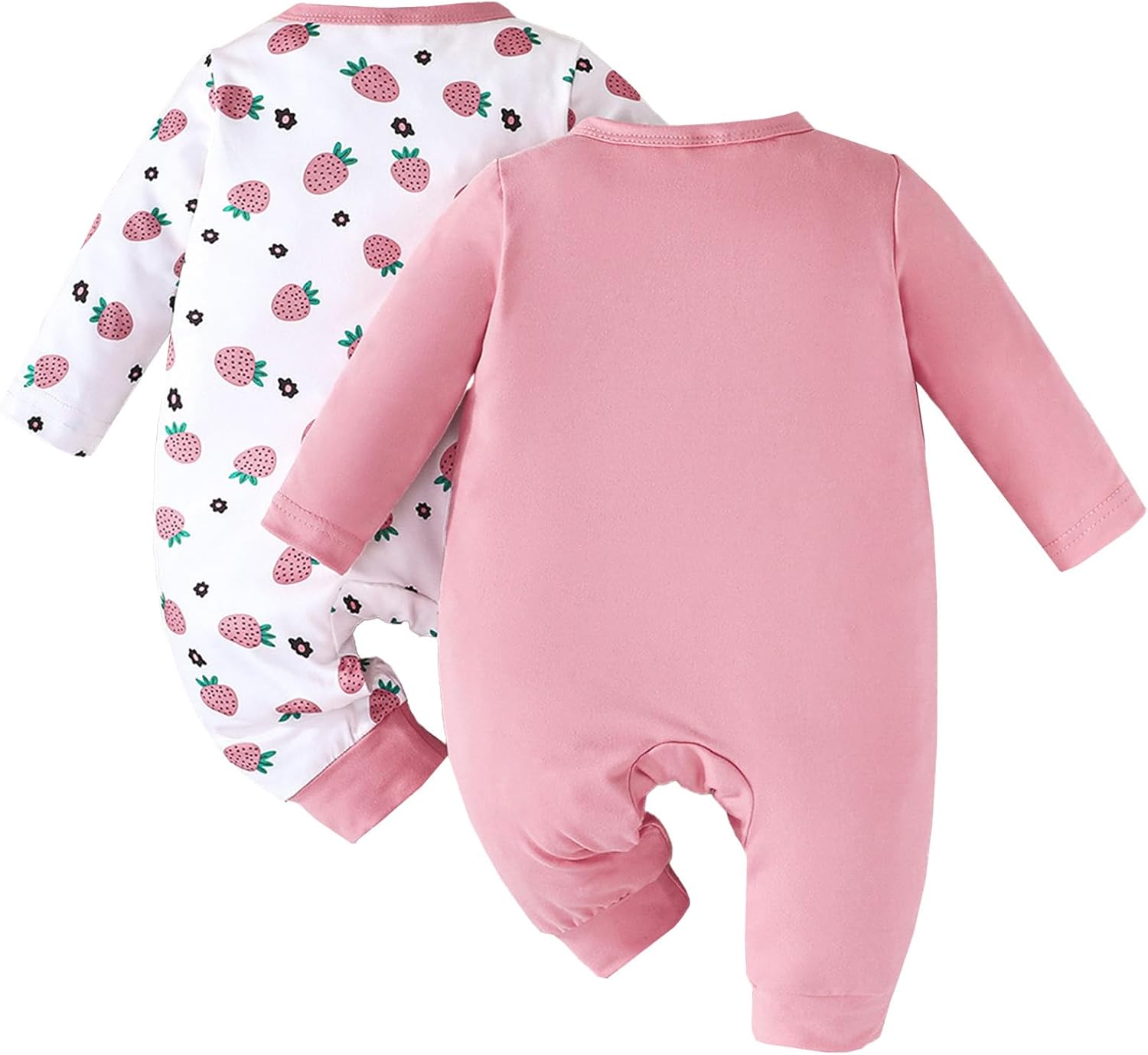 JiAmy 2Pcs Baby Pyjama, Boys Girls Long Sleeve Romper, Slanting Snap Button Snowsuit, Cotton Onesie Jumpsuit for Infant 0-12 Months