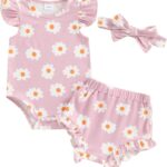 Minizone Baby Girls Pyjama Summer, Short Sleeve Romper Cotton Bodysuit 9-12 Months