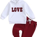 3-Piece Baby Girls Ribbed Set Letter Print Long Sleeve Round Neck Ruffled Romper Long Trousers Hair Band Adorable Outfits