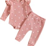 Siyova Baby Girl Rompers Long Sleeve Toddler Girls 2Pcs Outfits Lace Trim Bow Jumpsuits with Hat Newborn Bodysuit Fall Winter Clothes Set
