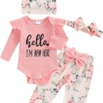 Carolilly Newborn Baby Girl Outfits 2Pcs Outfits Clothing Set Daddy’s Girl Fuzzy Letter Embroidery Long Sleeve Sweatshirt + Pocket Pants Elastic Waist Set Toddler Clothes