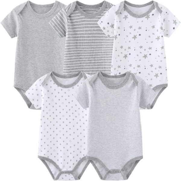 Chamie Baby Bodysuit Cotton Short Sleeve Vests for Newborn 5-Pack One-Piece Suit for Boy and Girl 0-12 Months…