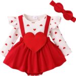 Derouetkia Baby Girl Clothes Ruffle Tops with Bow + Heart Print Pants Outfit Set