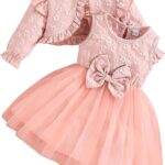 IBTOM CASTLE Baby Girls Floral Print Dress Cardigan 2PCS Set Newborn Infant Sleeveless Cotton Dresses with Bow Coat Brithday Dress Toddler Girls Clothes
