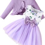 Kumsolu Baby Girl Clothes Ruffled Sleeve Tops Pants Infant 3-Piece Outfit Set 3-6 Months