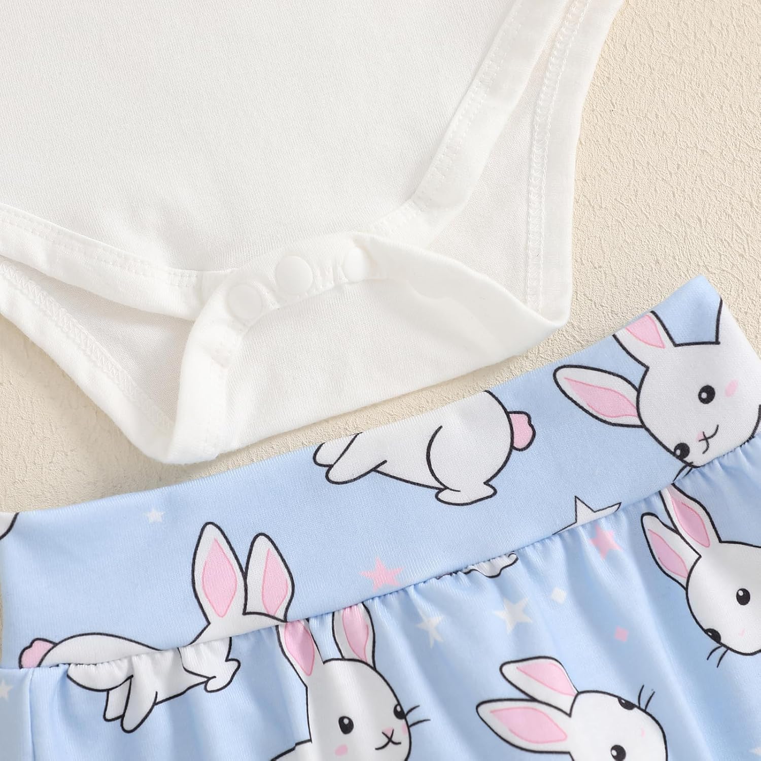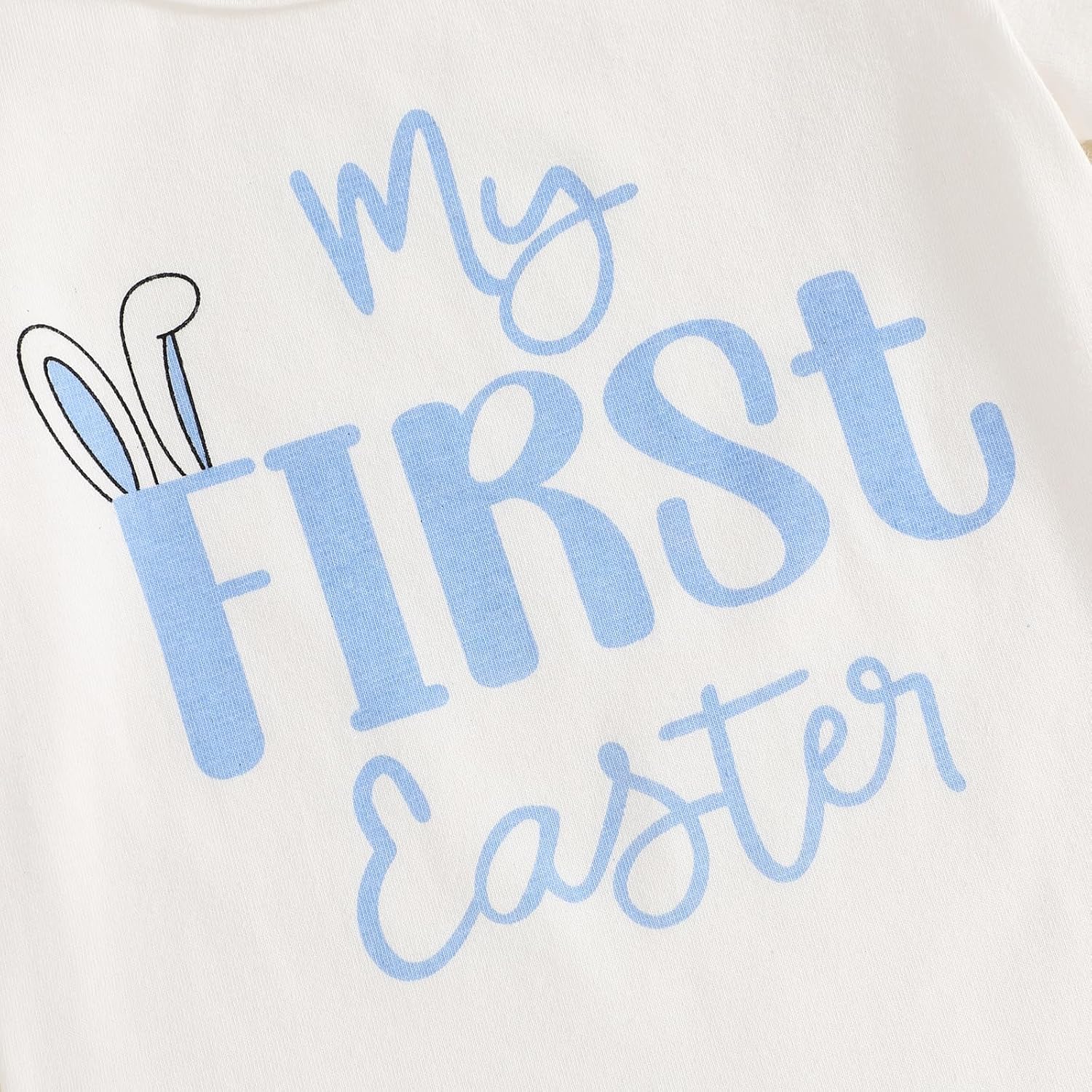 My First Easter Outfit Baby Girls Letter Print Romper and Rabbit Tail Shorts + Headband Set Clothes