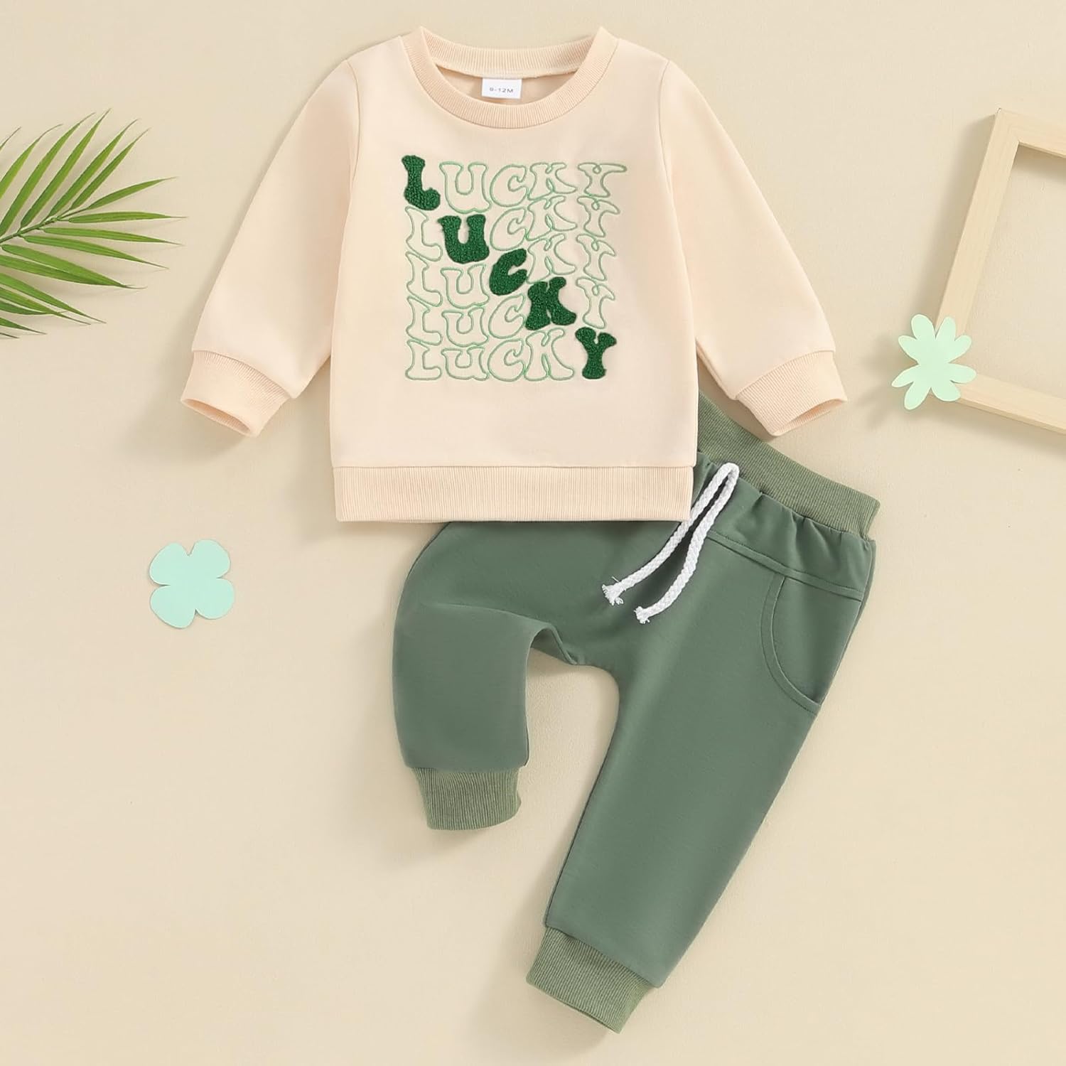 M9ppzzur7 Toddler Baby Pants Sets Pullover Sweatshirt +Pants Shamrocks Green Tracksuit Outfit Clothes