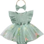 QUNERY Baby Girls Clothes Floral Tops Bodysuit Bear Dungarees Adjustable Overalls Outfits Set