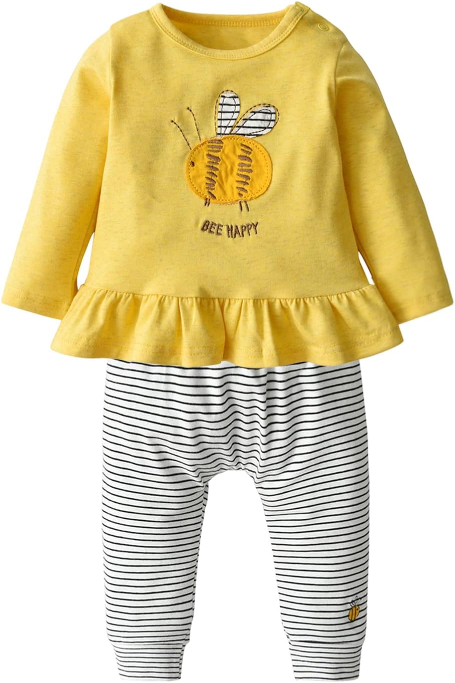 Tinykeke Baby Girl Clothes Long Sleeve Cartoon Pattern Tops and Pants Infant Girls Outfits Set