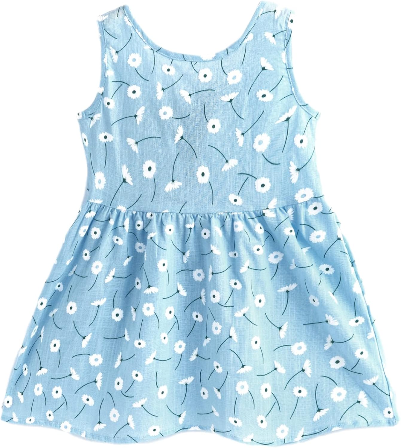 amropi Baby Girl’s Flower Printed Dress Sleeveless Cotton A-Line Summer Dresses for 0-5 Years