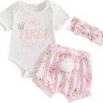 Baby Girls 1st Birthday Cake Smash Outfit Toddlers Infant Adorable Sweet Short Puff Sleeve Ruffle Tulle Romper Dress and Headband 2 Pcs Outfits Bodysuit Photo Shooting Props