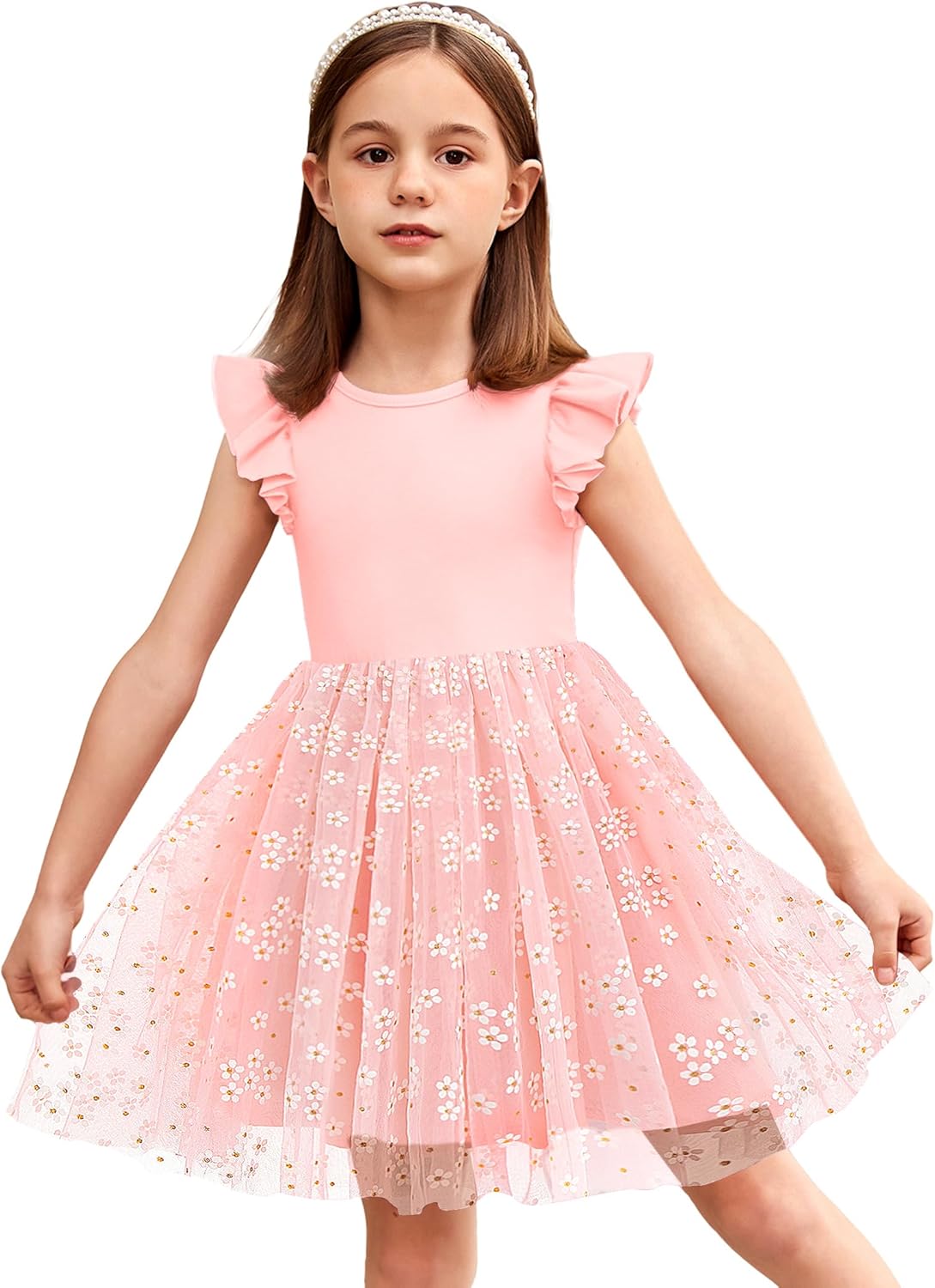 Arshiner Girls’ Dresses Toddler Tulle Dress Flying Sleeves Princess Dress Festive Dress Tutu Children’s Dress Cotton Party Dress Birthday Wedding Summer Dress 2-7 Year