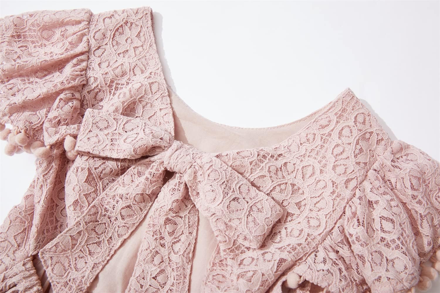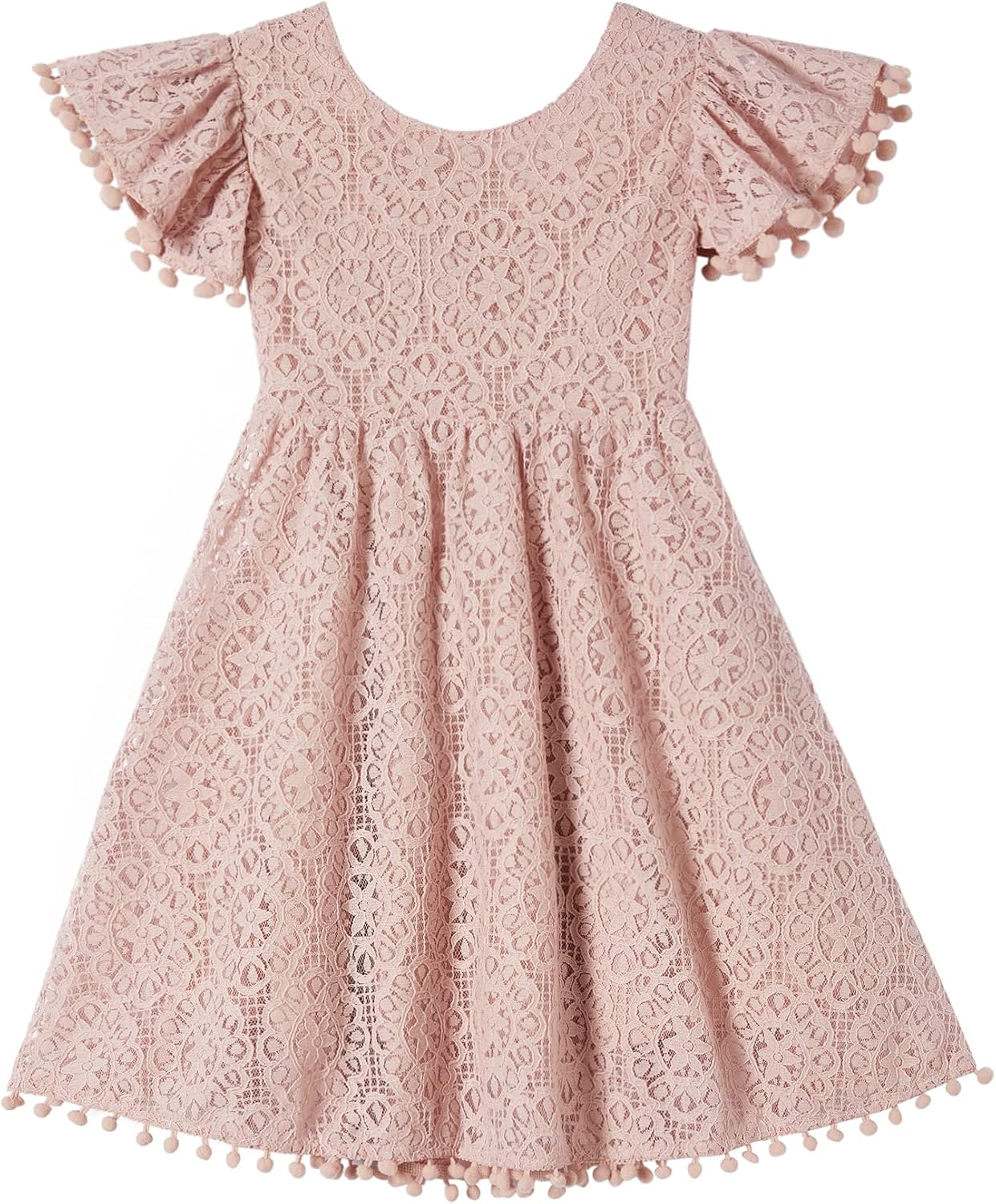 Beganly Girls Elegant Lace Princess Dress Toddler Vintage Pom Pom Flutter Sleeve Party Dresses