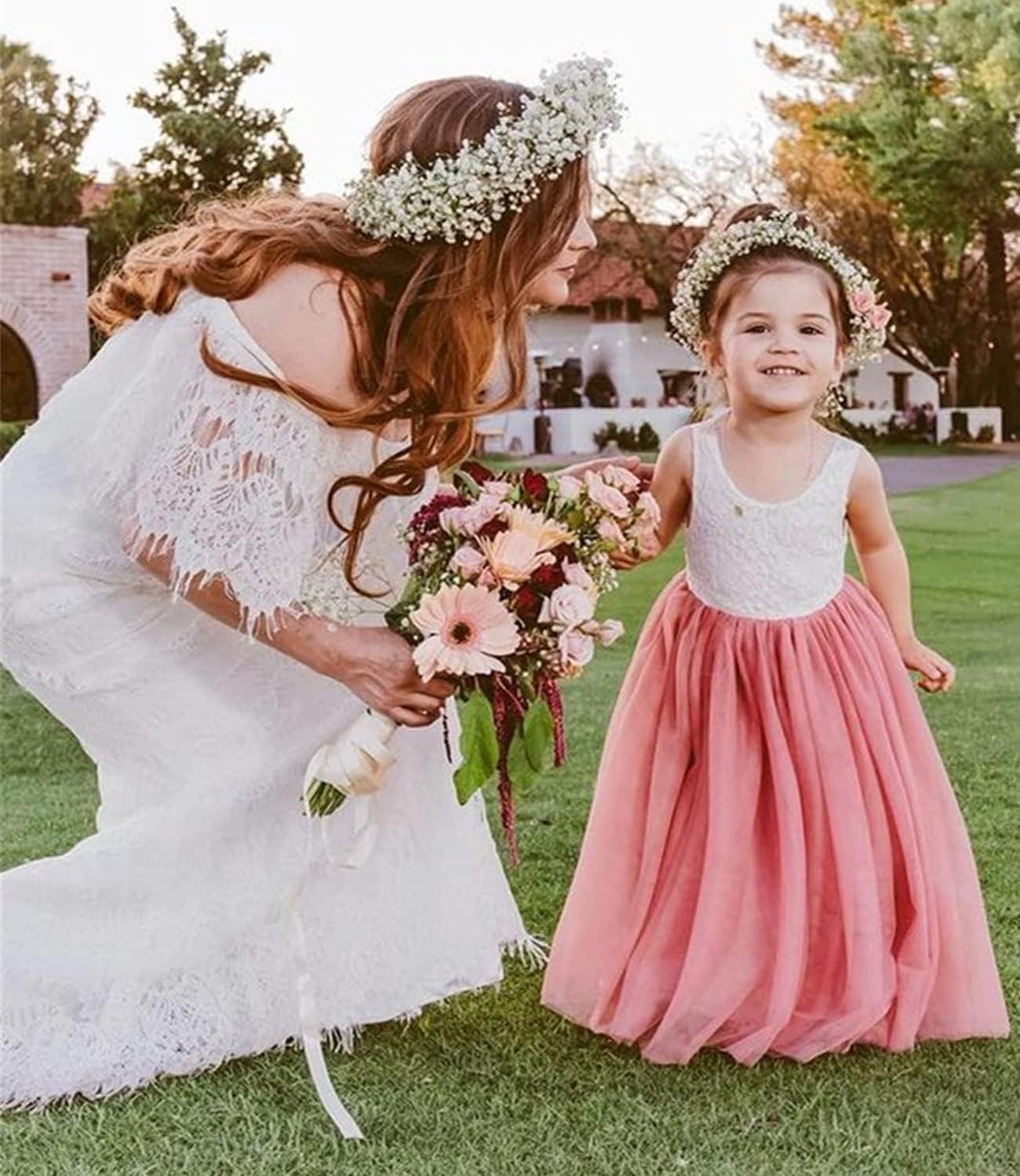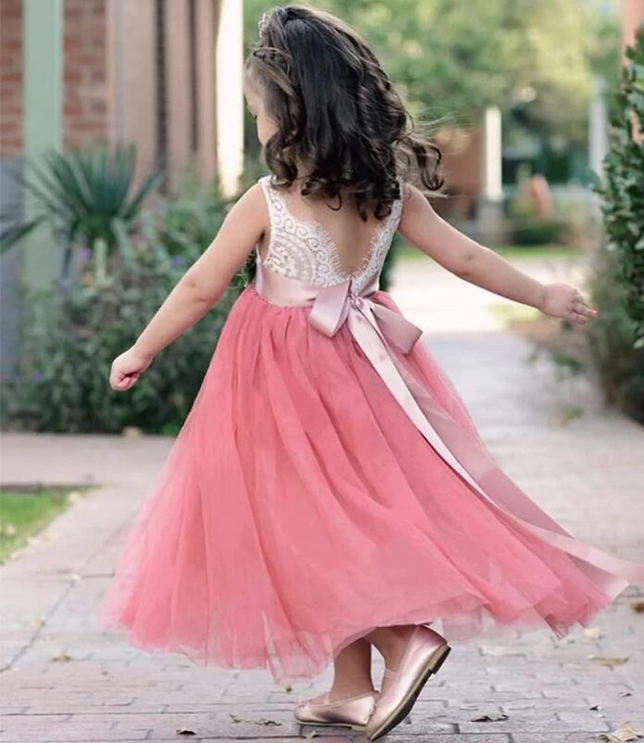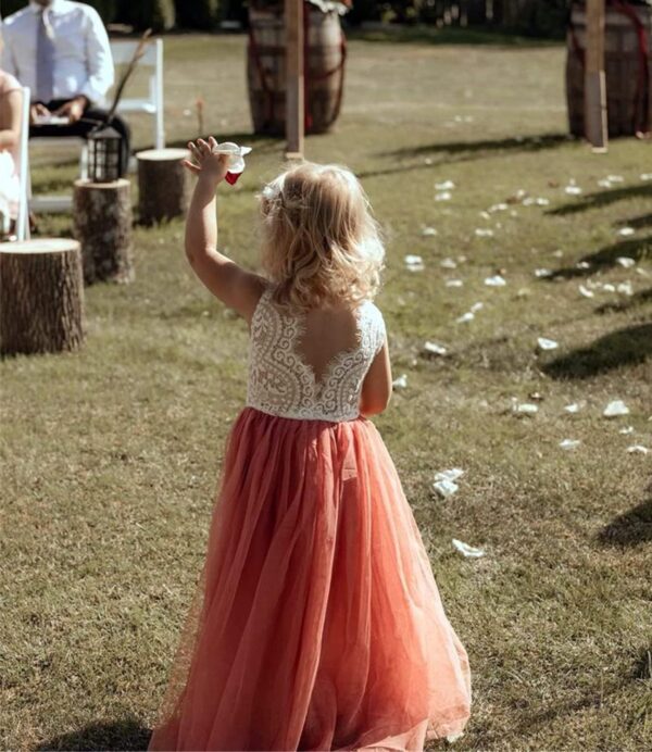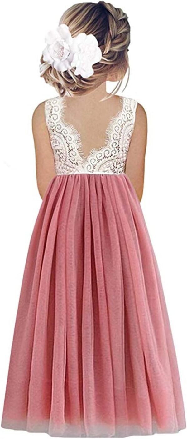 Beganly Toddler Girls Elegant Lace Straight Maxi Tulle Party Dresses V Back Flower Girl Dress