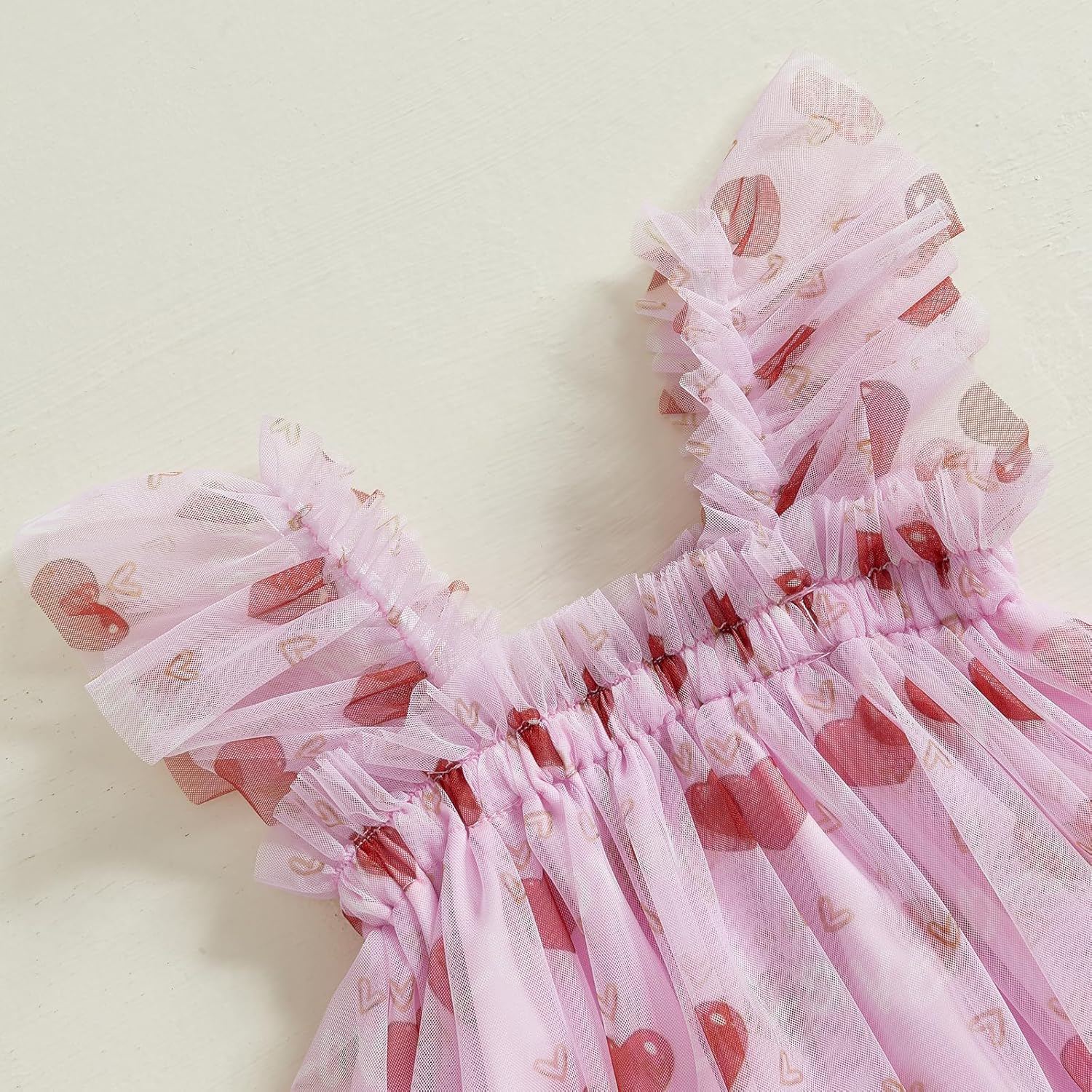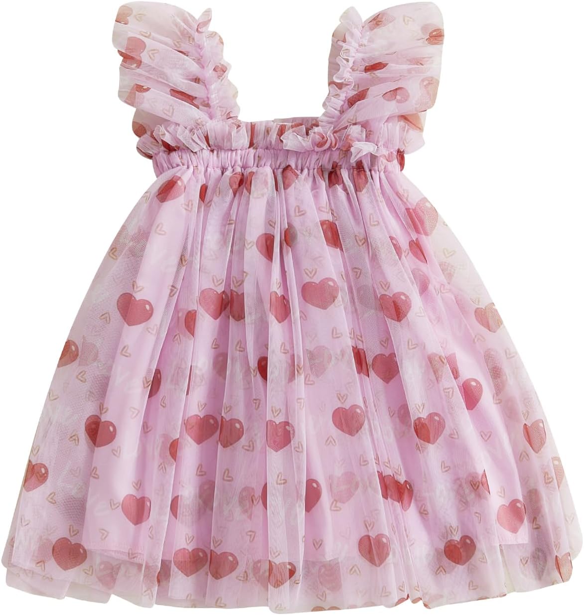 BYUSBAYA Toddler Girls Valentines Tutu Dress Sleeveless Heart Print Layered Ruffles Tulle Cake Dress Wedding Ball Gown Dress