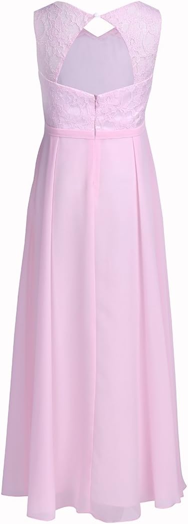 CHICTRY Big Girls’ Lace Chiffon Cutout Back Flower Girl Dress Wedding Formal Party Graduation Gowns