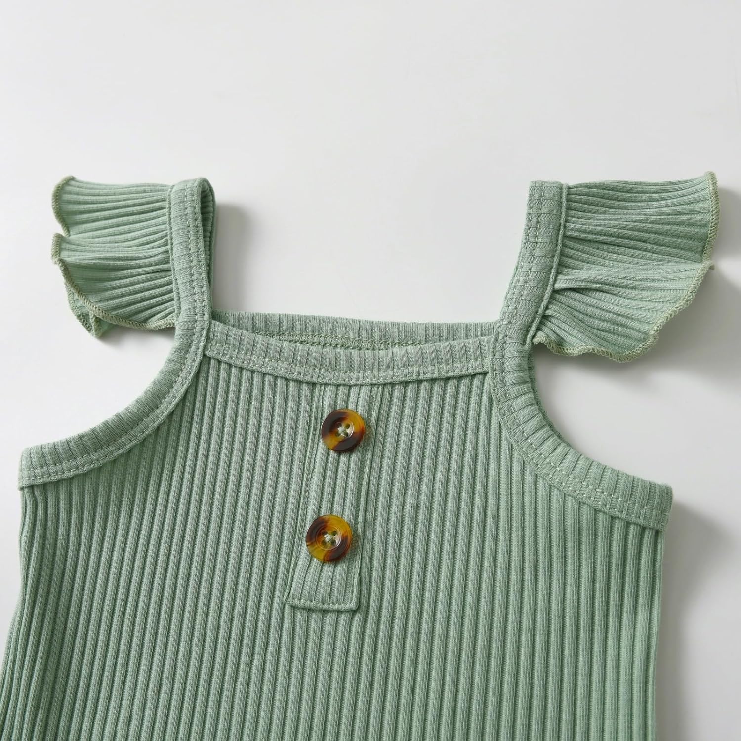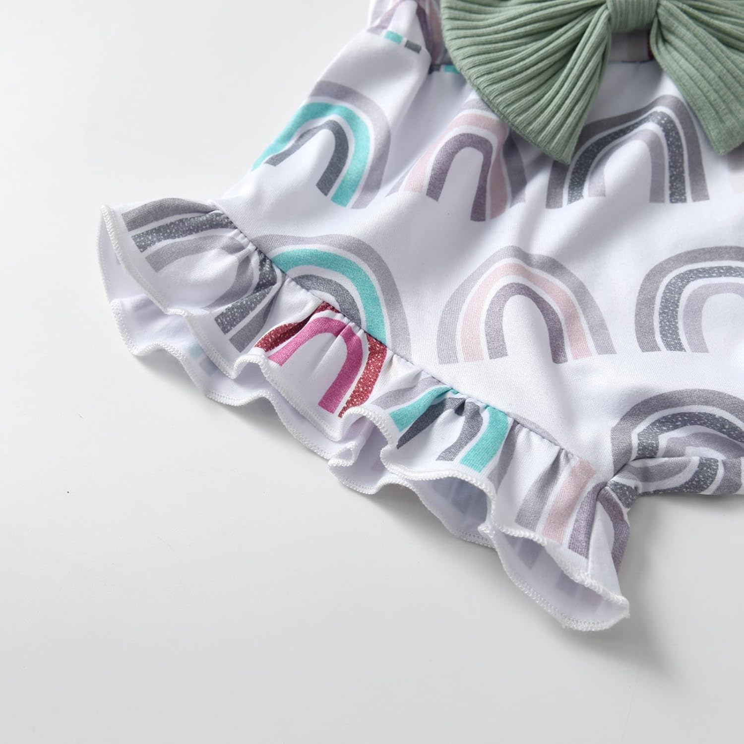 Derouetkia Infant Baby Girl Summer Clothes Suspender Tops + Bow Shorts Outfit Set