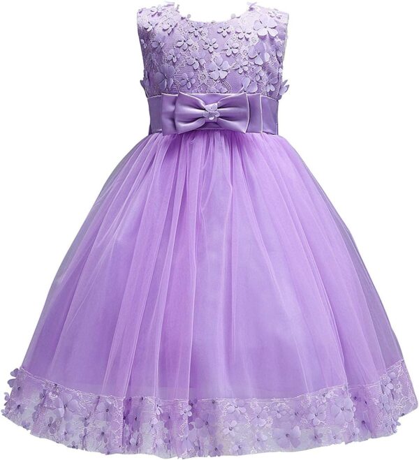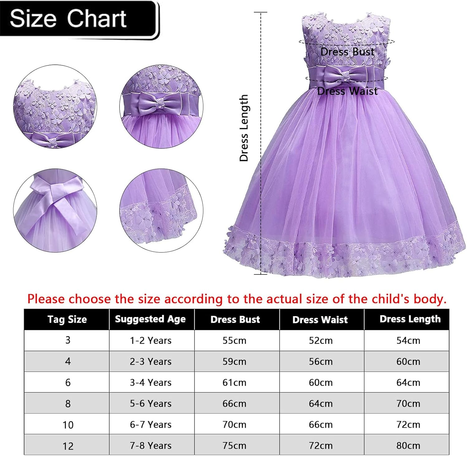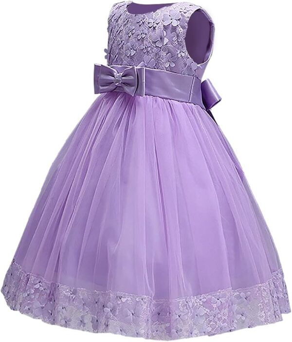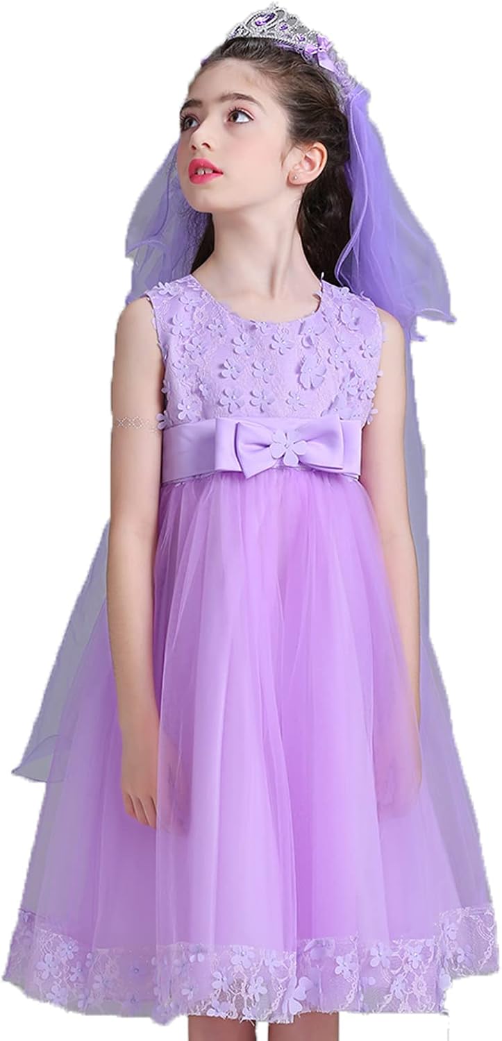 Discoball Girls Princess Dress,Tulle Bow Lace Embroidery Flower Girl Dress,Birthday Party Wedding Bridesmaid First Communion Girls’ Dresses for 1-10 Years