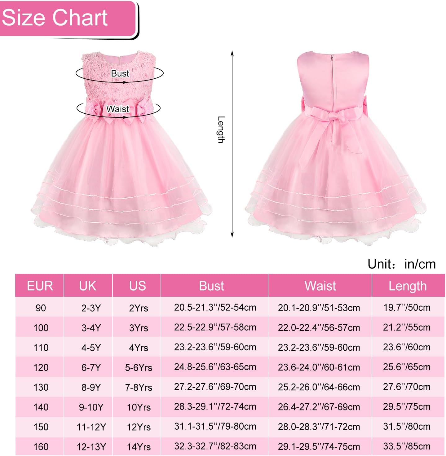 High Quality Material – This beautiful dress crafted from polyester and Nylon Tulle, comfortable lining and elaborate stitching, not easily deform faded. Soft, breathable material and great workmanship makes your little girls more beautiful and feeling comfortable