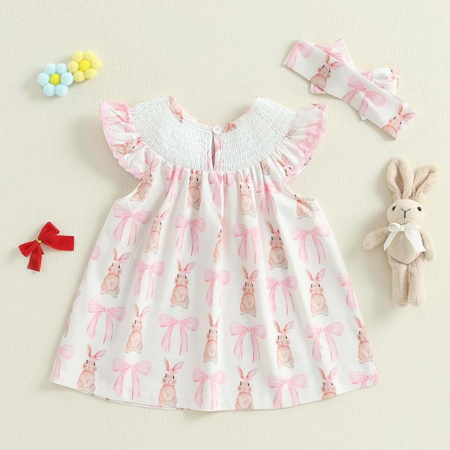 Toddler Baby Girls Easter Dress Bunny Embroidered My First Easter Baby Girl Outfit Ruffle Sleeve Summer Dresses