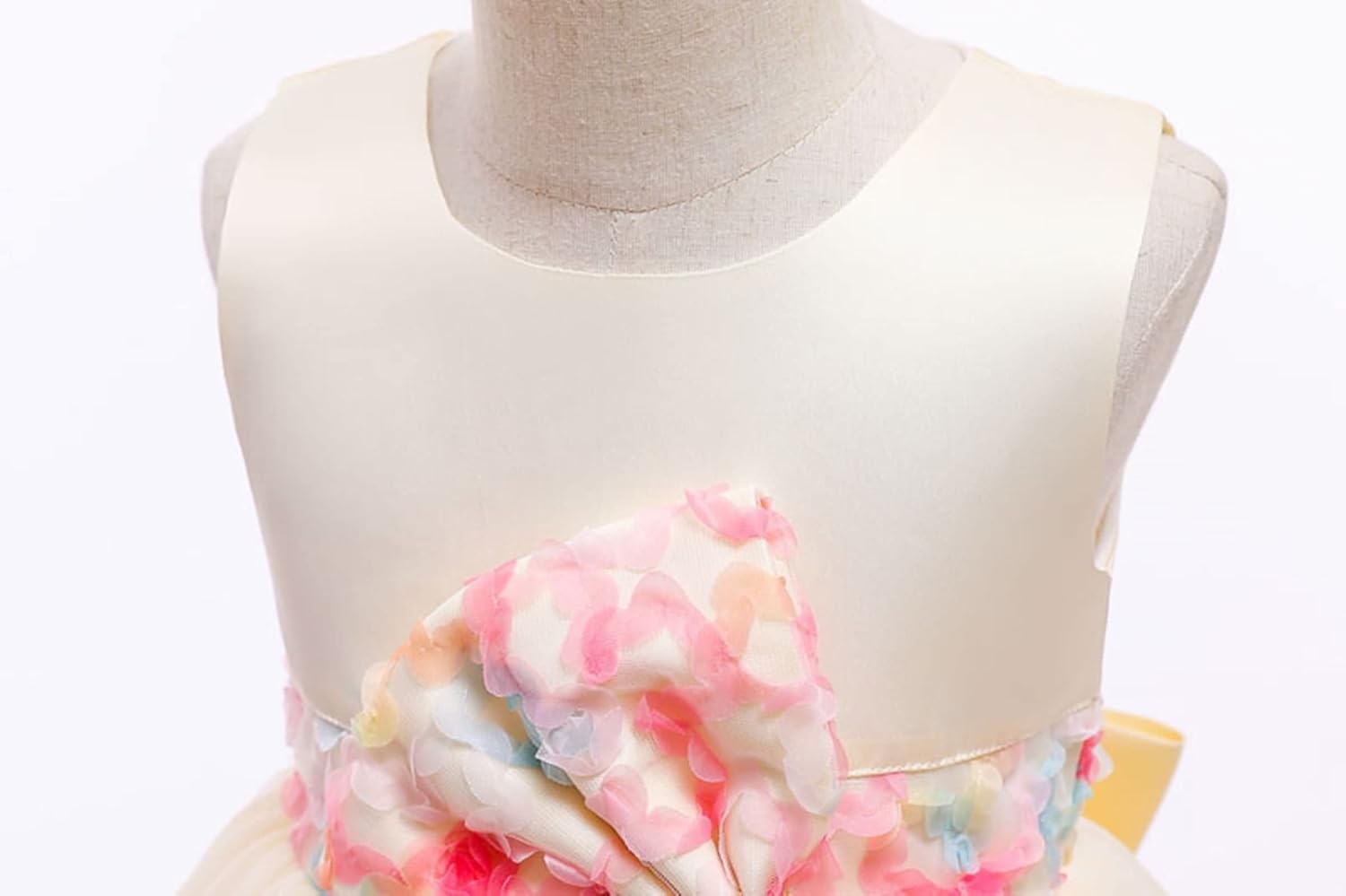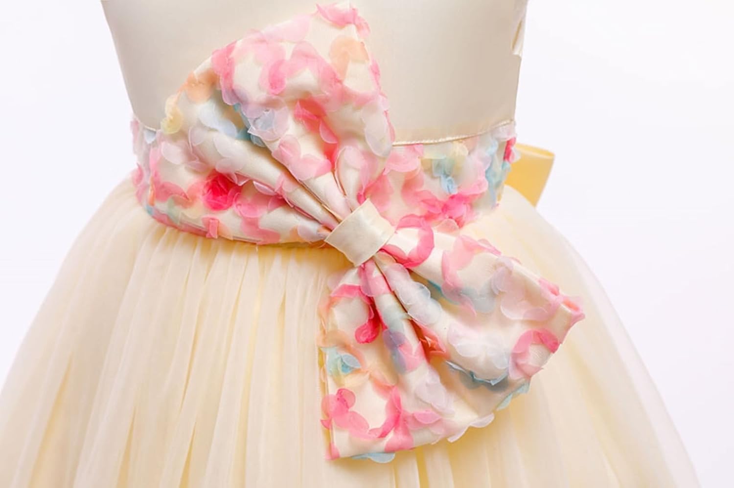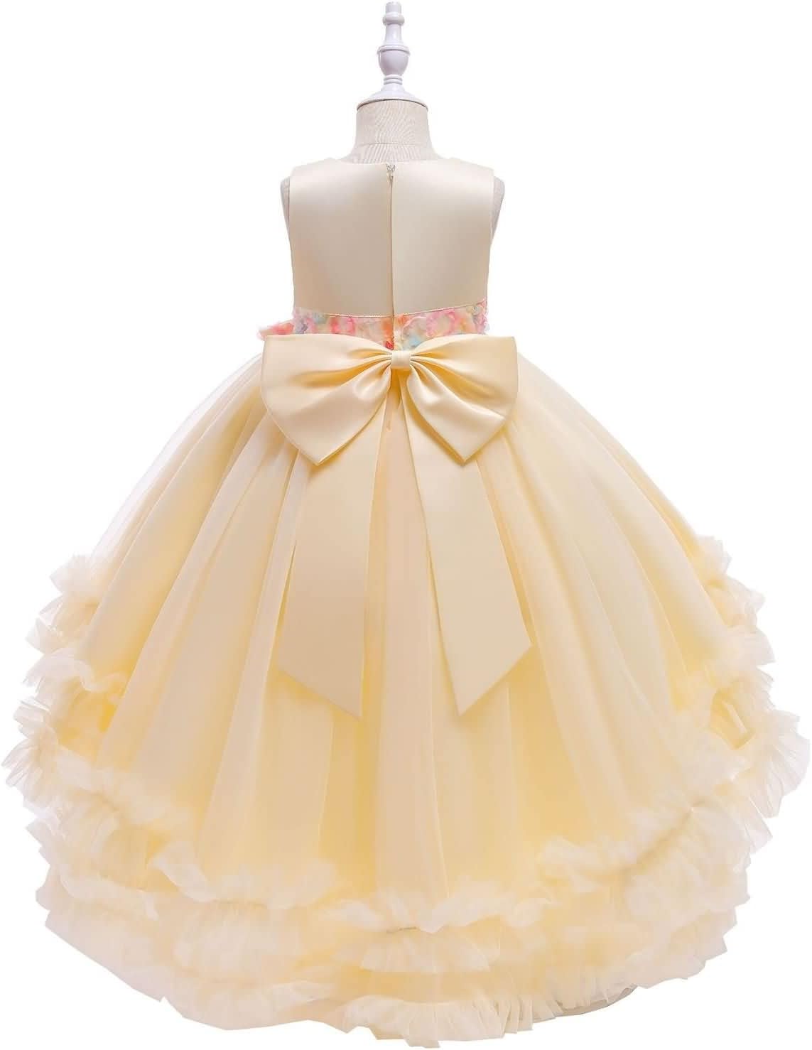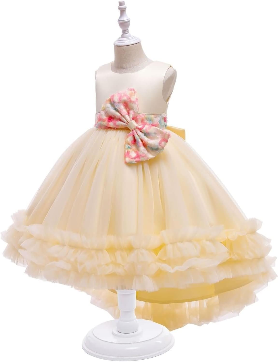 Girls Ball Gown Dresses, Girls Special Occasion Dress Champagne Puffy Tulle Dress High Low with Long Train and Bow on Back