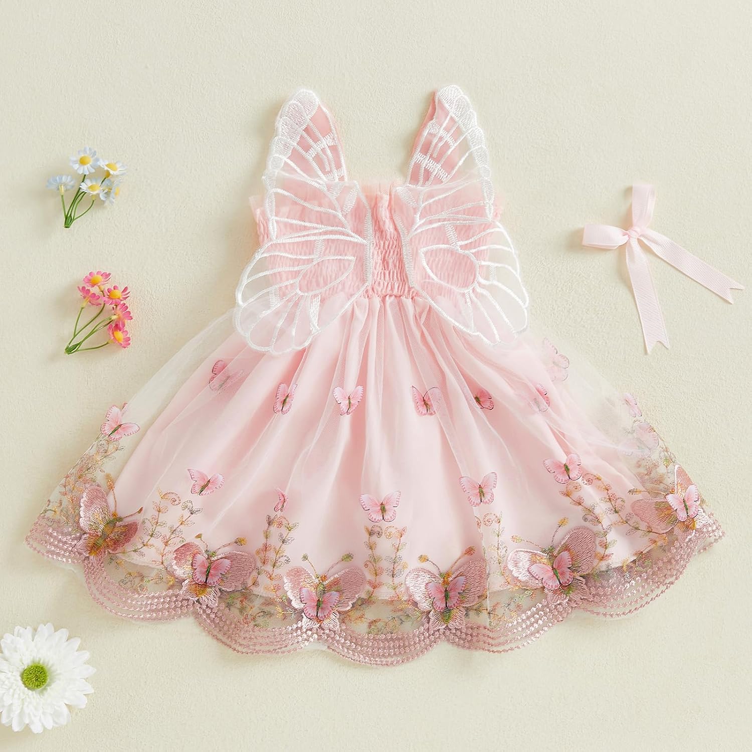 Himllauen Baby Girl Ruffle Sleeveless Dress Toddler Girl 3D Bufferfly Flower Tulle Dress Square Neck Princess Wing Party Dress for Little Girl