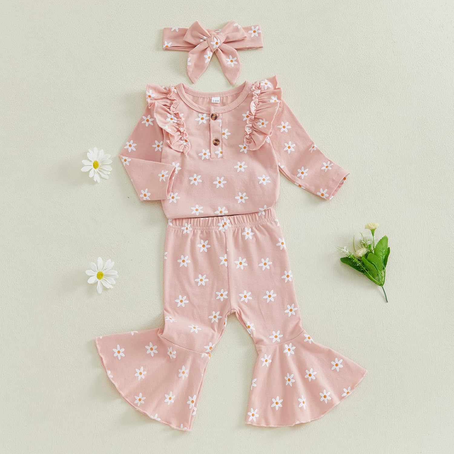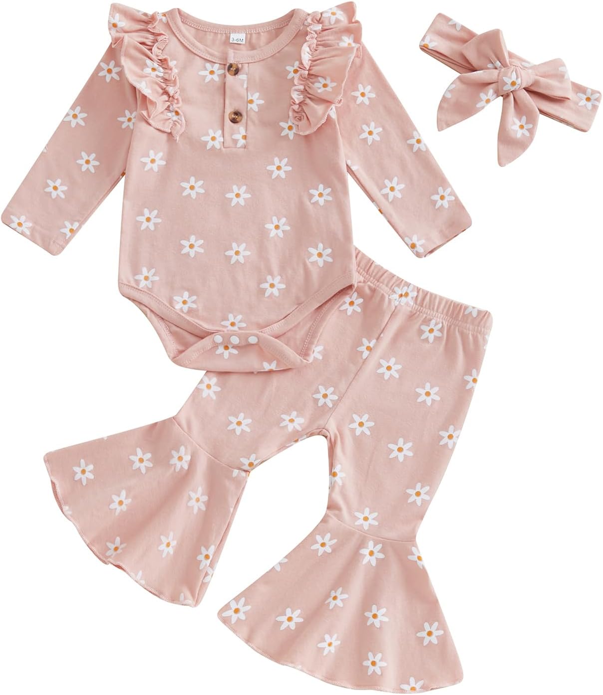 Himllauen Baby Girls Flower Print Outfit Baby Girls 3Pcs Long Sleeve Crew Neck Romper + Flared + Headband Sets for Baby Fall Winter